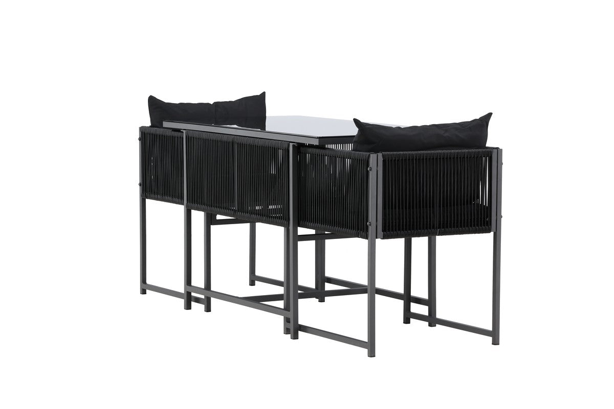 De Sabbia tuinset is de perfecte combinatie van stijl en functionaliteit, ontworpen voor gezellige diners in de buitenlucht. Deze elegante 2-persoons set bestaat uit een ruime glazen eettafel en twee comfortabele stoelen, waarmee je een moderne en uitnodigende sfeer creëert op je terras of veranda.