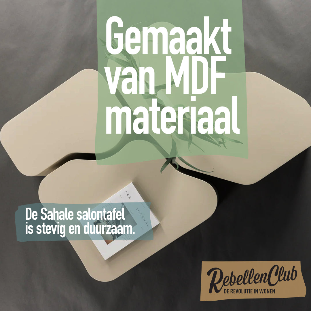 Gemaakt van MDF-materiaal is de Sahale salontafel stevig en duurzaam. Het is niet alleen een stijlvol meubelstuk, maar ook praktisch met veel ruimte om tijdschriften, afstandsbedieningen of uw favoriete decoraties neer te zetten.