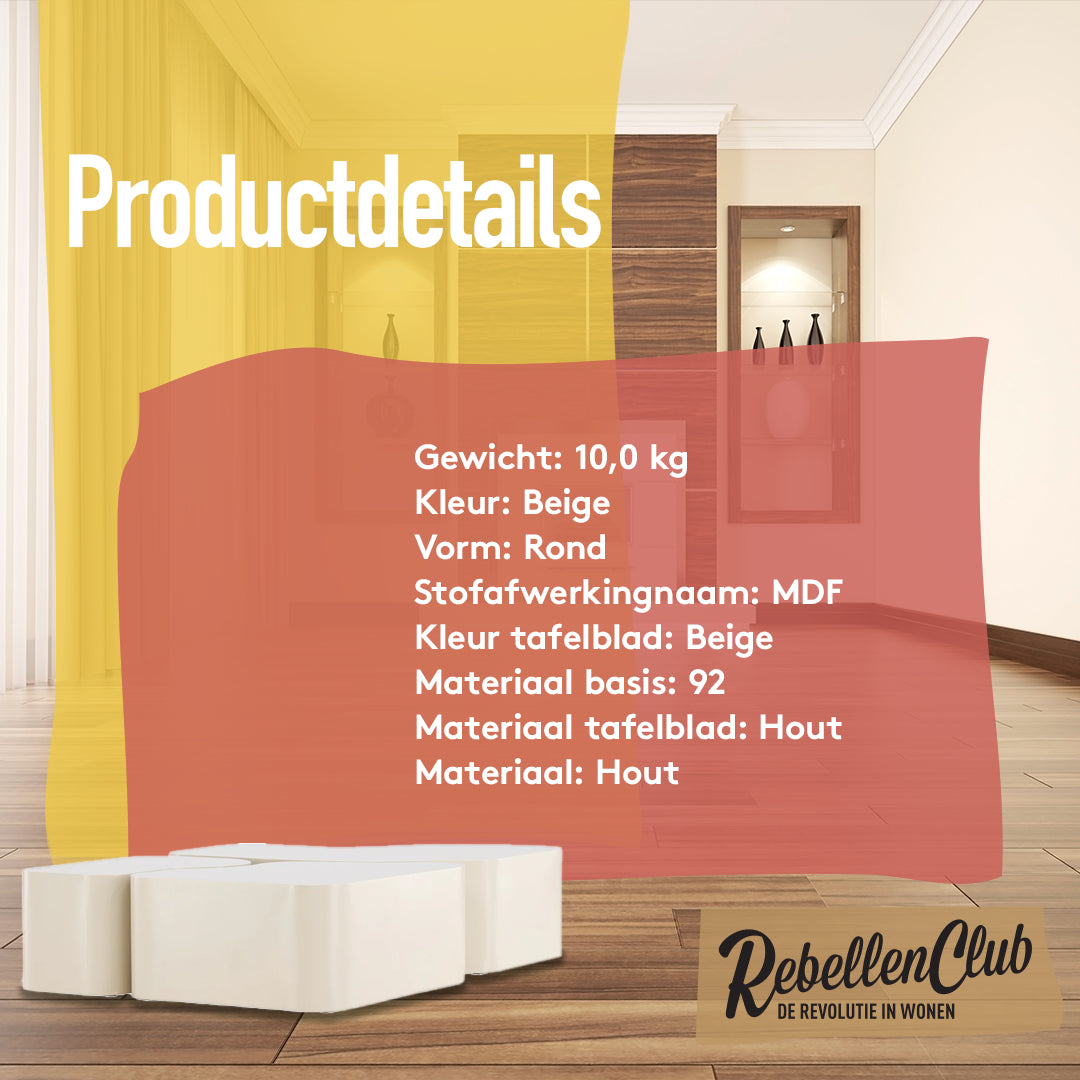 - De salontafel is ontworpen in een prachtige beige kleur die een warm en uitnodigend gevoel aan de kamer geeft.