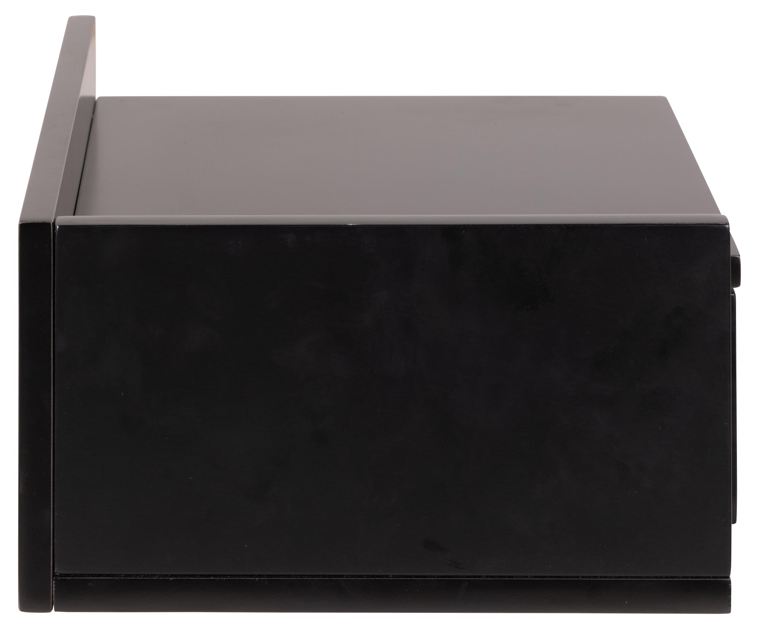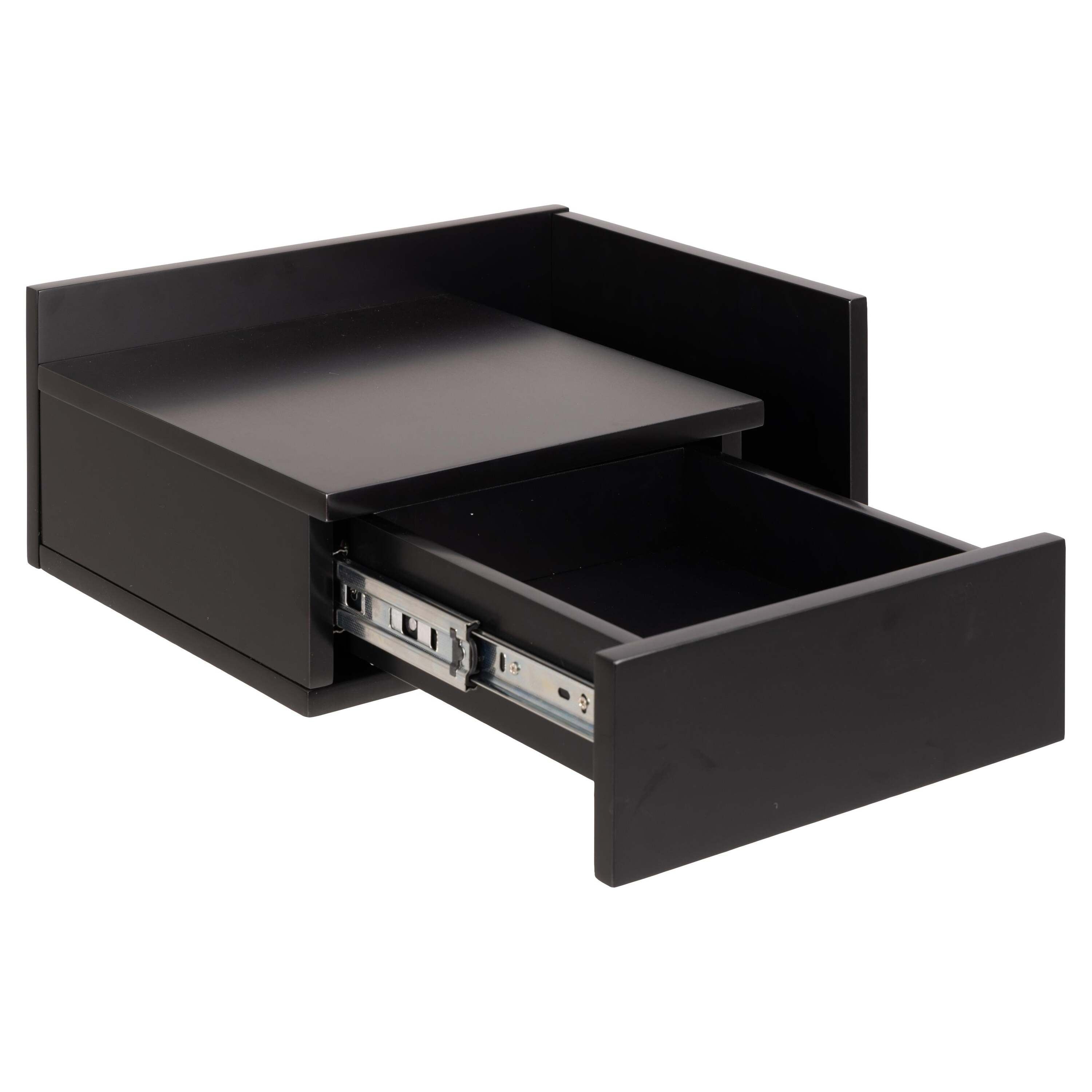 De volledig uitschuifbare lade, voorzien van metalen geleiders, is ruim genoeg zodat je alles wat je nodig hebt binnen handbereik kunt bewaren. Dit nachtkastje heeft een lade en een open vak, ideaal voor het opbergen van kleine benodigdheden zoals een bril en je telefoon.