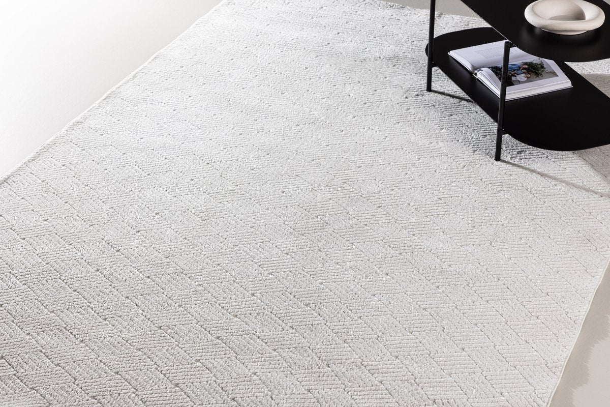Het Suld vloerkleed van 290 x 200 cm in de kleur wit heeft een modern design en voegt frisheid en stijl toe aan elk interieur. Met een subtiel gestreept wiebertjespatroon biedt het vloerkleed een mooi en elegant detail dat perfect aansluit bij een neutrale inrichting.