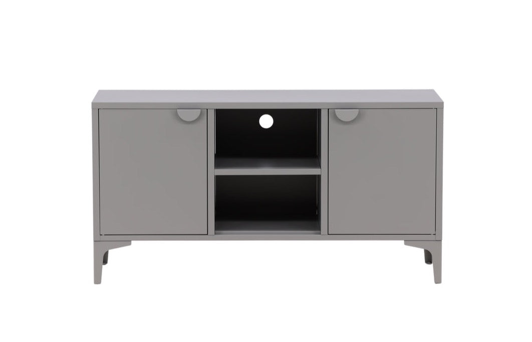 TV meubel Forde is een moderne en industrieel TV meubel in een mooie licht grijze kleur. Het tv meubel is gemaakt van stevig staal wat ervoor zorgt dat de kast strak en stevig is. Met twee deuren en planken biedt Forde voldoende opbergruimte voor je elektronica, mediatoebehoren en accessoires. TV meubel Forde zorgt voor een opgeruimd gevoel.