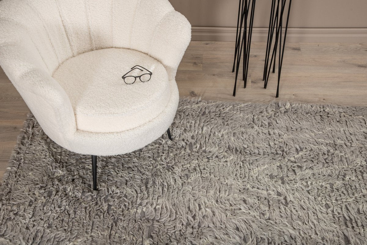 Het Vera vloerkleed is een heerlijk zacht en luxe wollen kleed in een grijze tint. Dit handgeweven vloerkleed heeft een hoge pool en een volle structuur, wat zorgt voor een elegante en warme uitstraling in huis. De neutrale kleur maakt het eenvoudig te combineren met diverse interieurstijlen. Perfect onder een salontafel of in de slaapkamer als knusse plek.