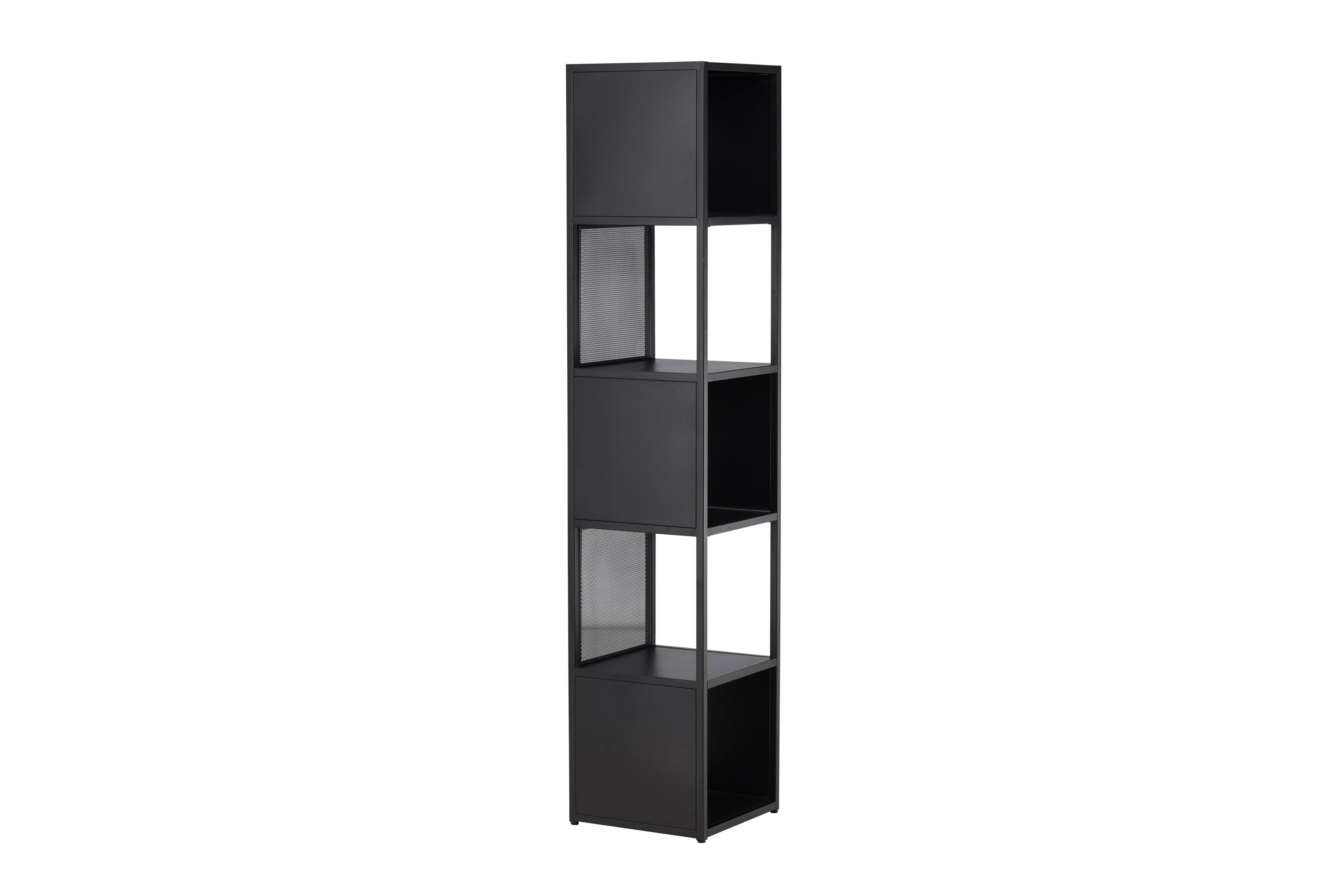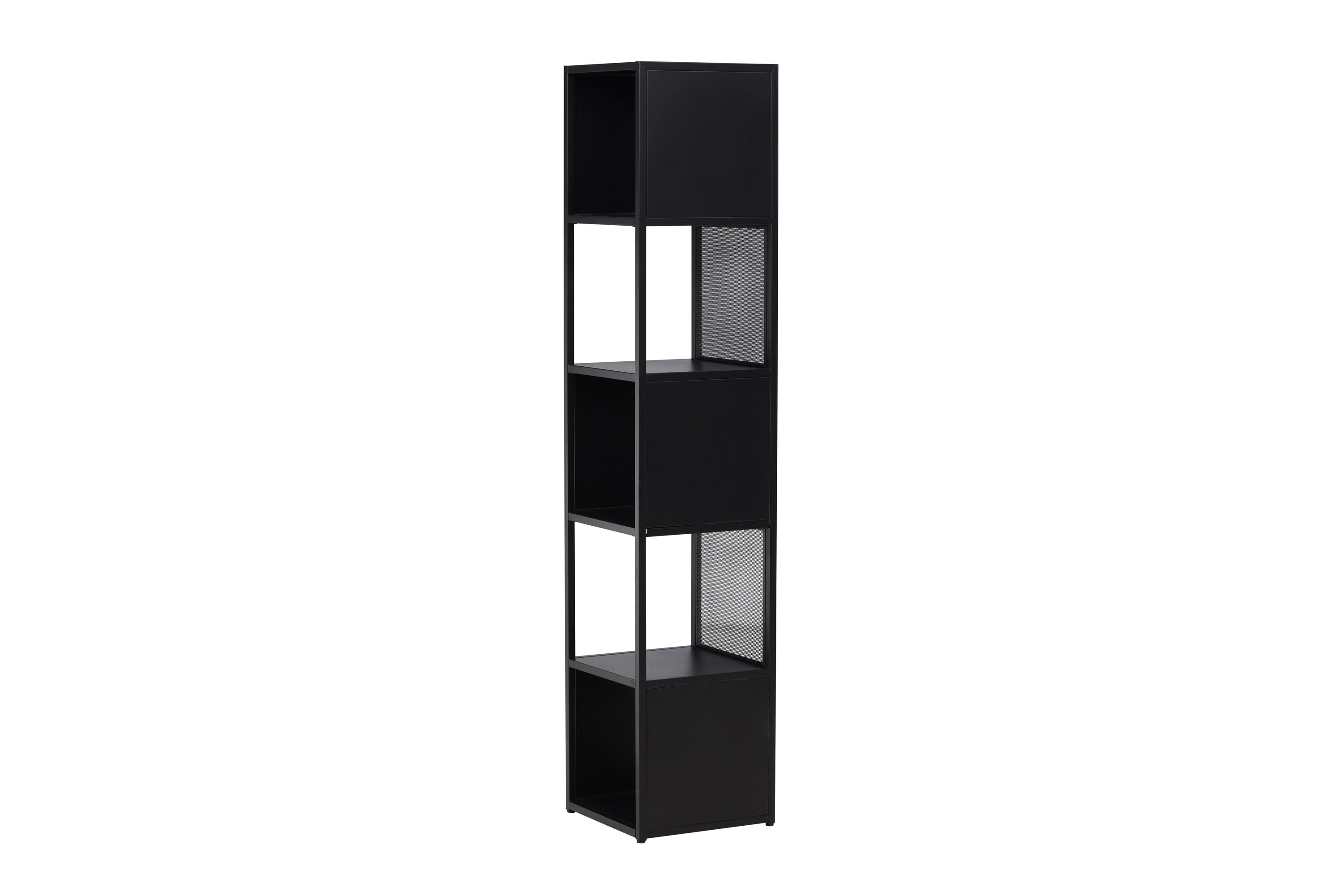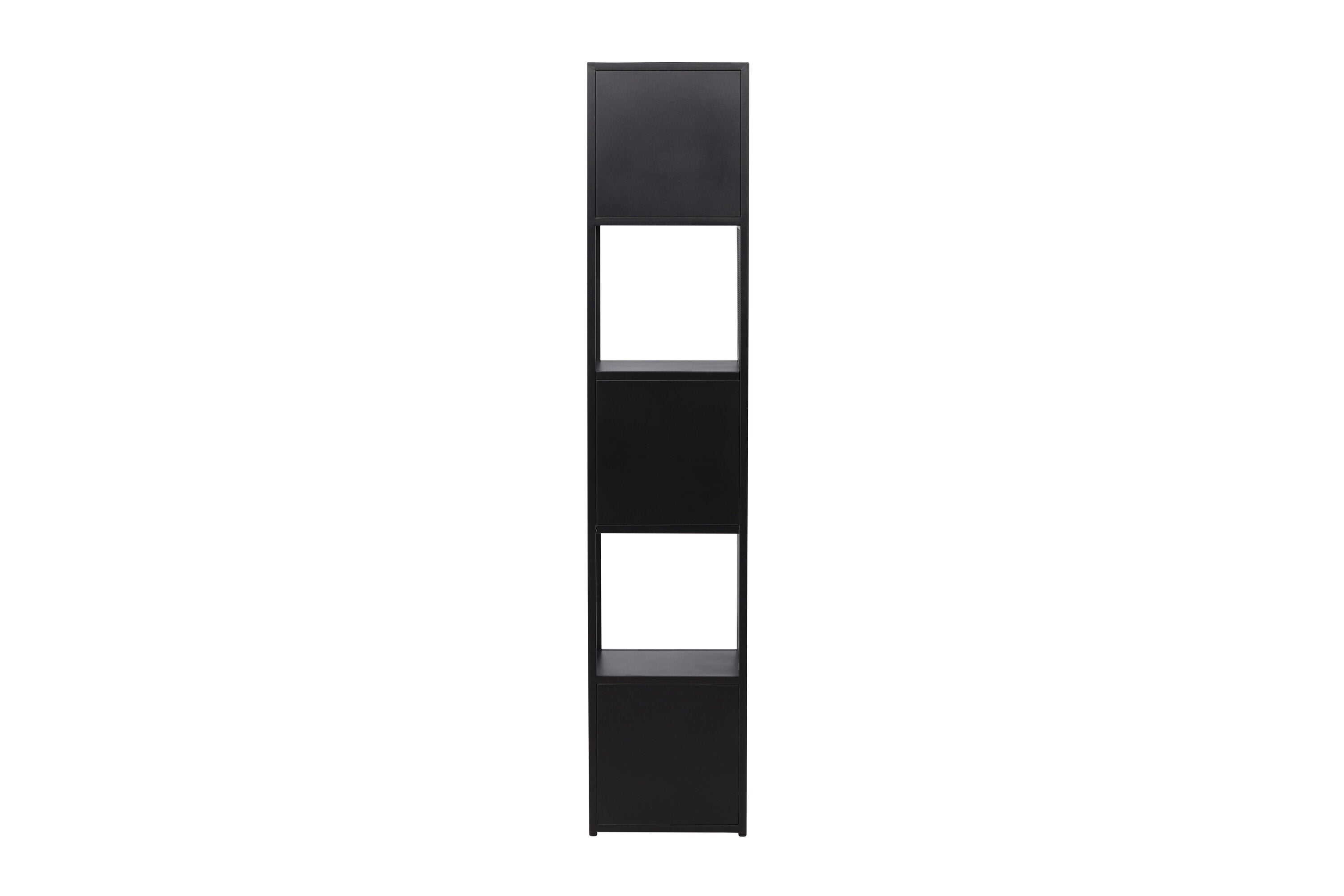 Met deze zwarte stalen plank krijg je niet zomaar een gewone opslagmogelijkheid. Je krijgt een smaakvol ontworpen meubelstuk dat elegantie en harmonie uitstraalt. De vijf vierkante vakken bieden je voldoende ruimte om alles te organiseren, van boeken tot decoraties.