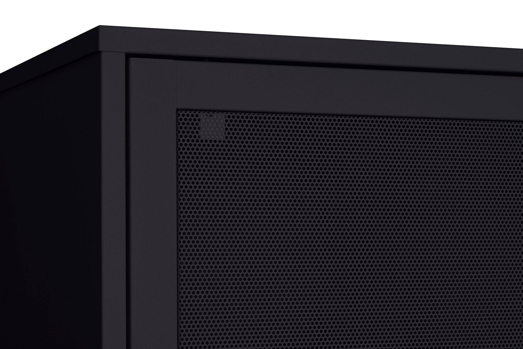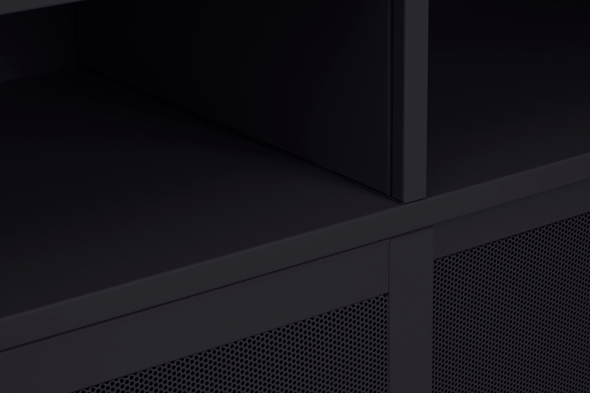 Ontdek de elegante en functionele wandkast Virke, van zwart metaal, een perfecte mix van minimalistische stijl en een vleugje industriële charme. Met een hoogte van 180cm biedt deze kast voldoende opbergruimte voor al je benodigdheden.
