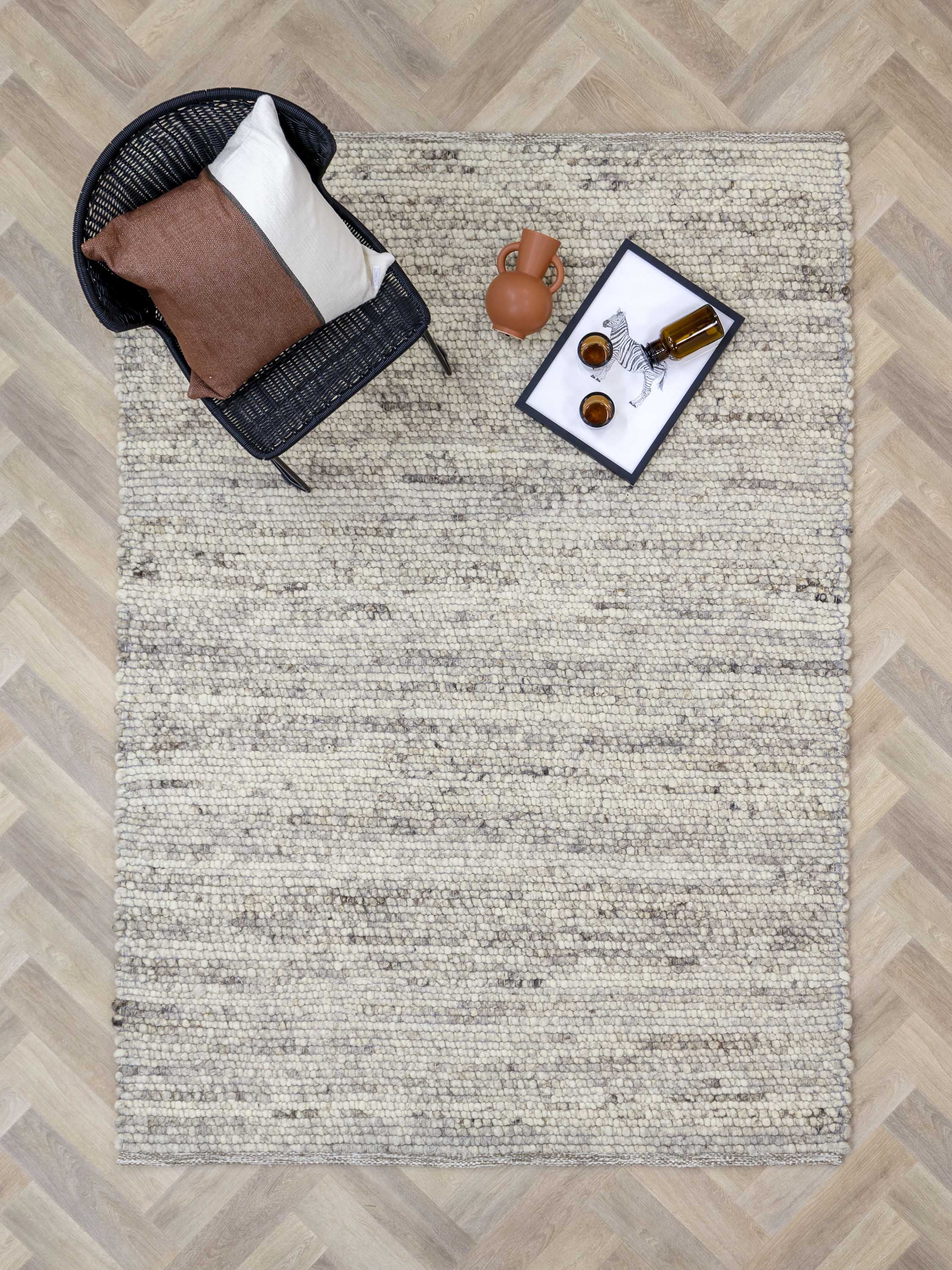 Vloerkleed Laura is een laagpolig vloerkleed. Dit tijdloze vloerkleed is prachtig door zijn eenvoud en hand geweven structuur. Het vloerkleed is verkrijgbaar in 3 verschillende kleuren, wit, beige en bruin. Door de gemêleerde structuur en kleuren komen verschillende grijs en beige tinten mooi tot zijn recht. Dit vloerkleed zorgt voor een verbinding in je interieur van kleuren. De naturel kleuren zijn tijdloos en dit vloerkleed zal daardoor jarenlang stralen in je interieur. Materiaal: Vloerkleed Laura is gemaakt van 100% wol. En voelt daardoor fijn en zacht aan, het gaat lang mee en is makkelijk te reinigen. En wist je dat dit vloerkleed geen achterzijde heeft, dat betekent dat je het vloerkleed aan beide zijden kunt gebruiken. We raden je aan om het vloerkleed af en toe te draaien, dit bevordert de levensduur. En zo geniet jij extra lang van je mooie vloerkleed! Afmetingen: Vloerkleed Laura is verkrijgbaar in 140x200 cm, 160x230 cm, 200x300 cm en rond vloerkleed met een diameter van 200 cm.