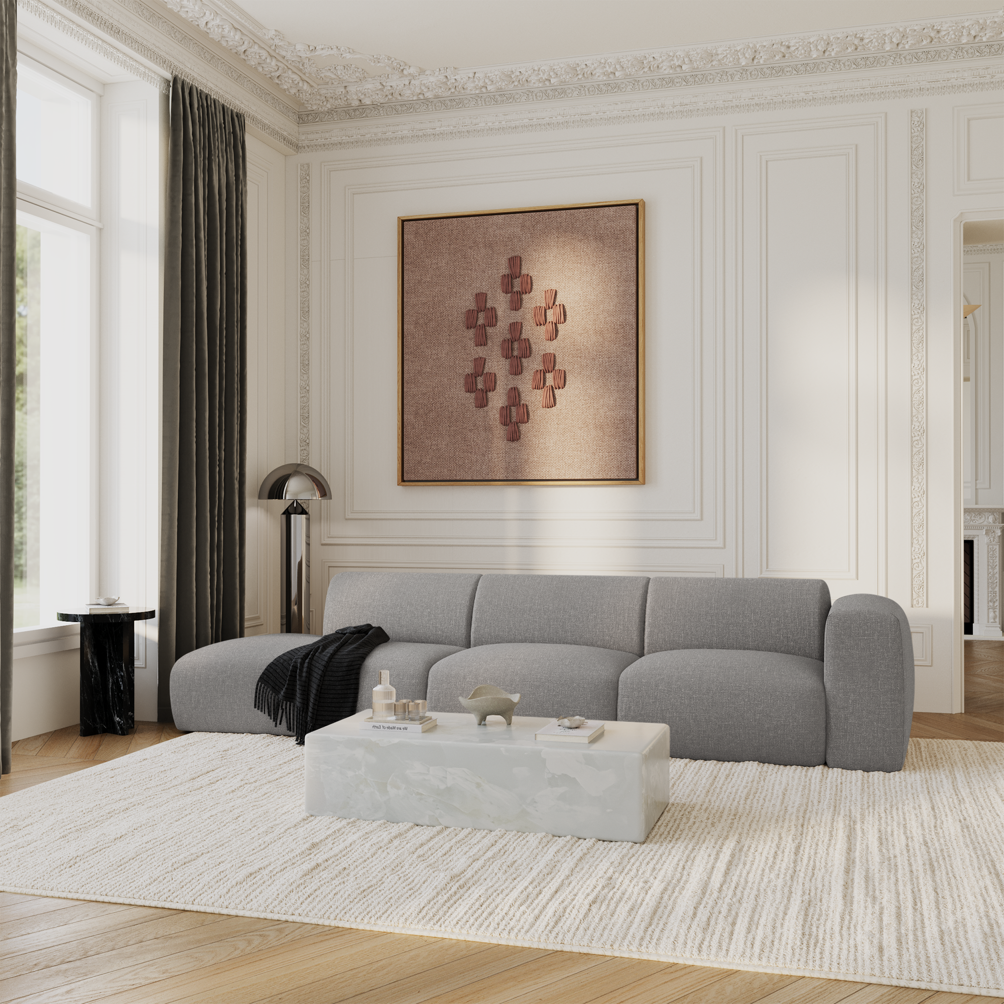 Rechte 5-zitsbank in lichtgrijze geweven stof, 310 cm