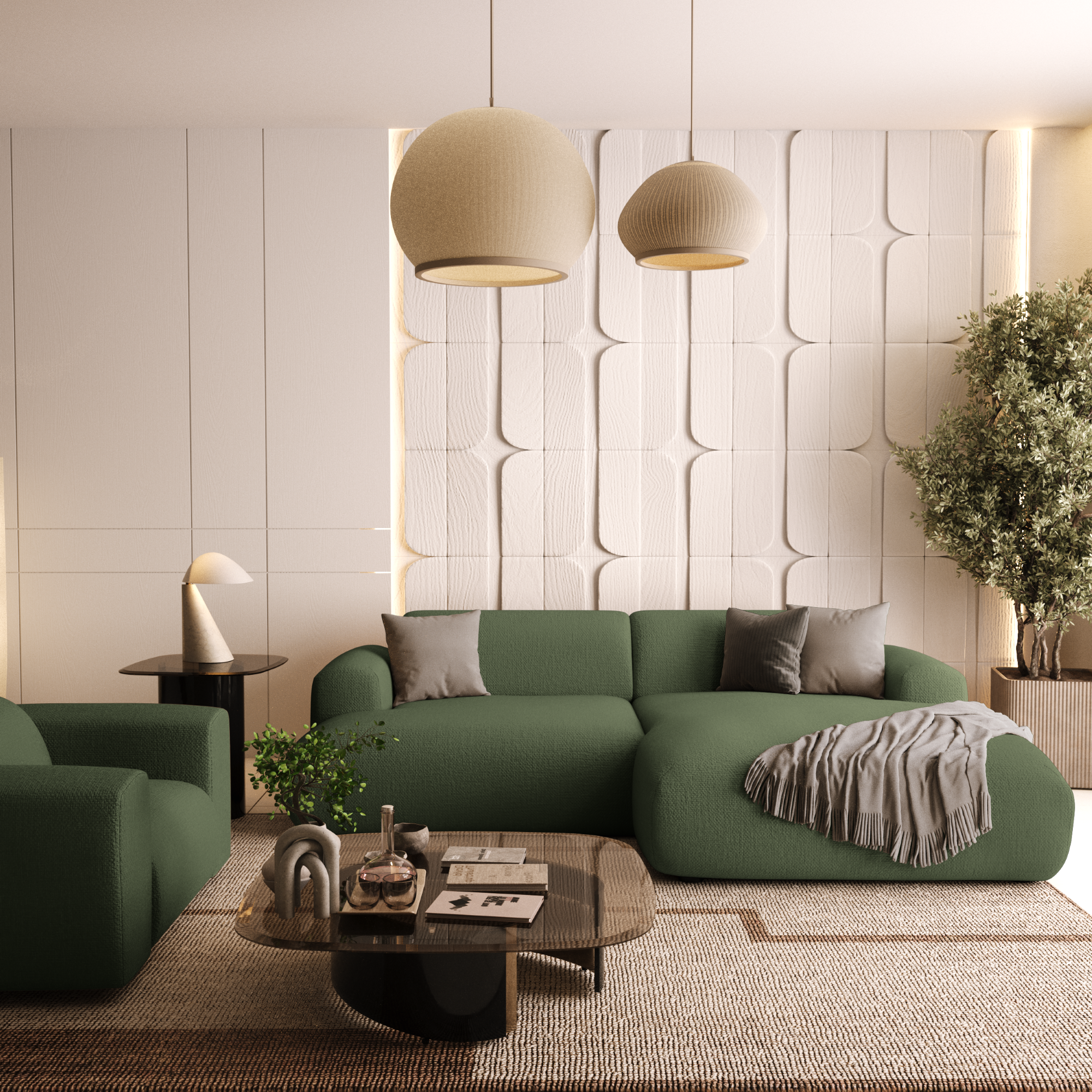Rechterhoekbank, 4-zits, olijfgroene geweven stof, 266 cm