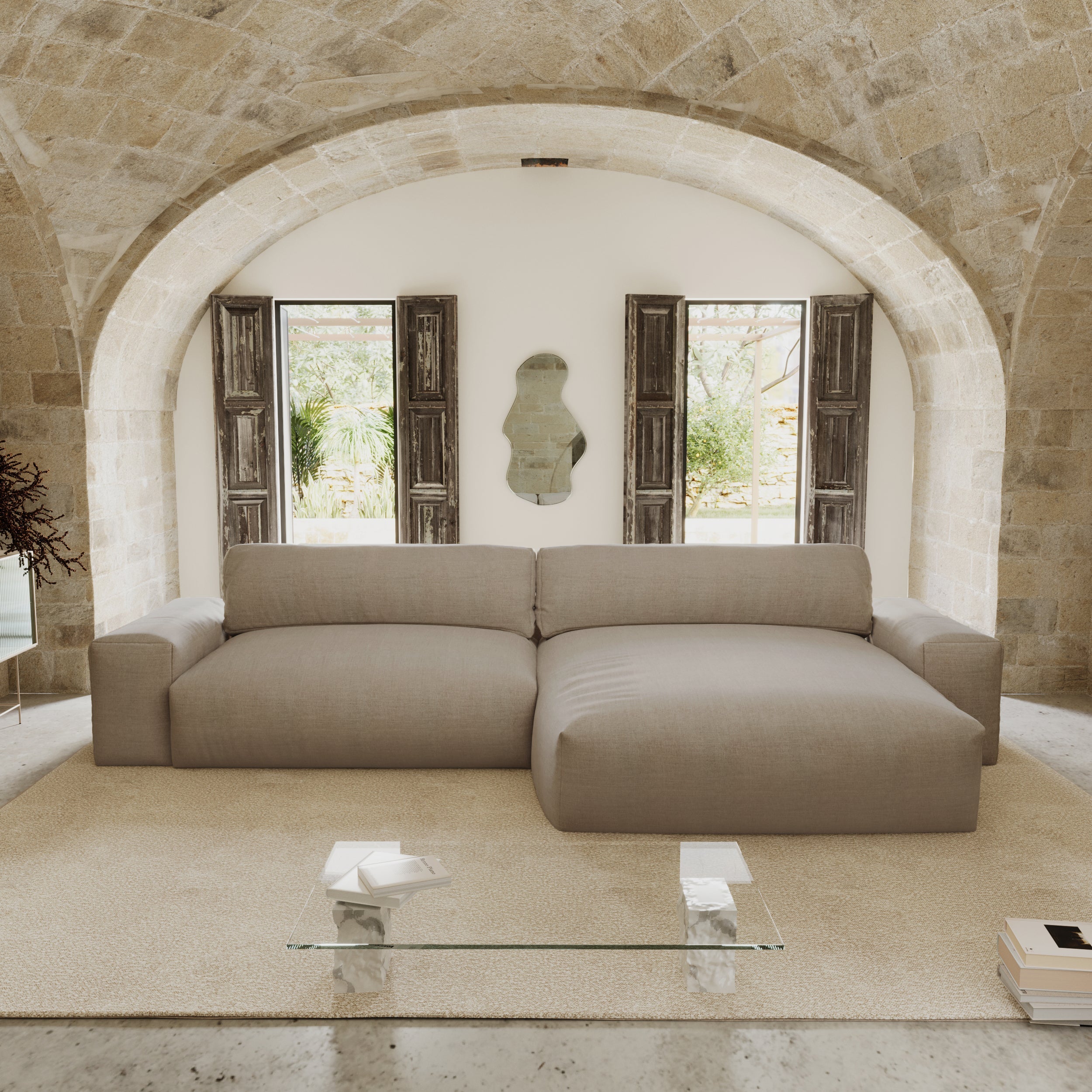 Rechterhoekbank, 4-zits, zachte geweven stof, taupe, 310 cm