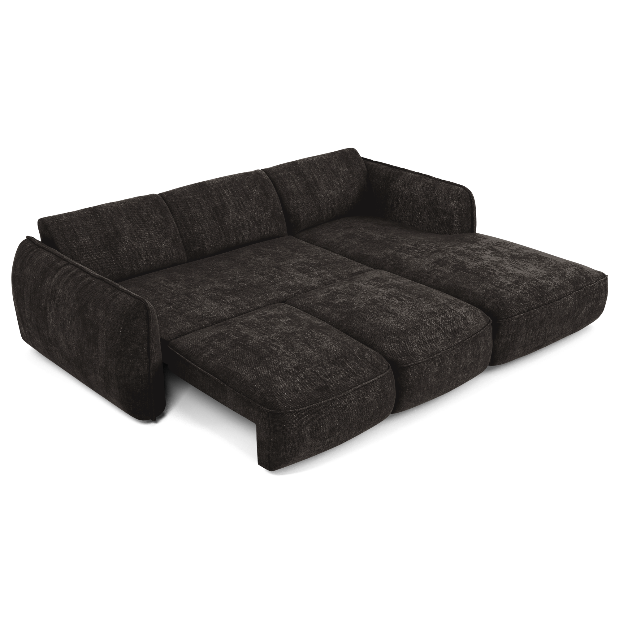 Rechterhoekbank met slaapfunctie, 4 zitplaatsen, zwart geweven fluweel