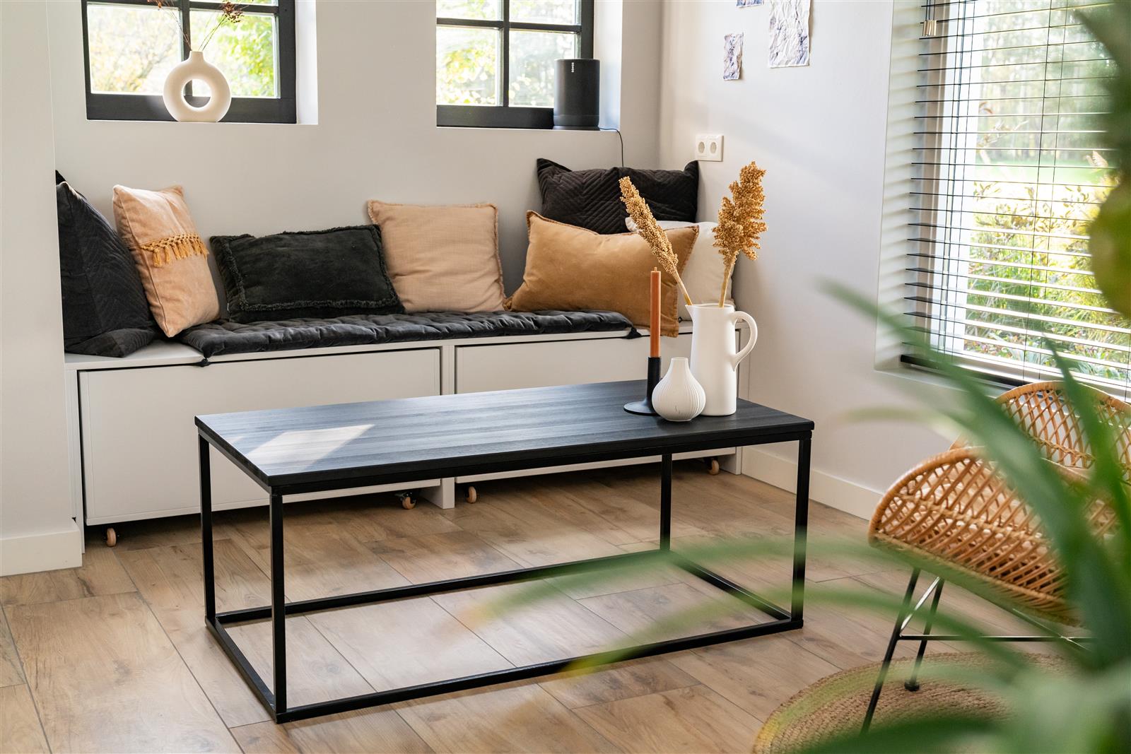 Toe aan een nieuwe stoere look in je interieur? Dan is onze rechthoekige salontafel Chicago perfect! Het robuuste zwarte onderstel in combinatie met het zwarte houten tafelblad geeft jouw interieur al snel die industriële uitstraling. Dankzij de zwarte kleur is de set makkelijk te combineren en nog makkelijker te decoreren. Een paar mooie planten en kaarsen erop en met weinig inspanning ziet je woonkamer er anders uit!