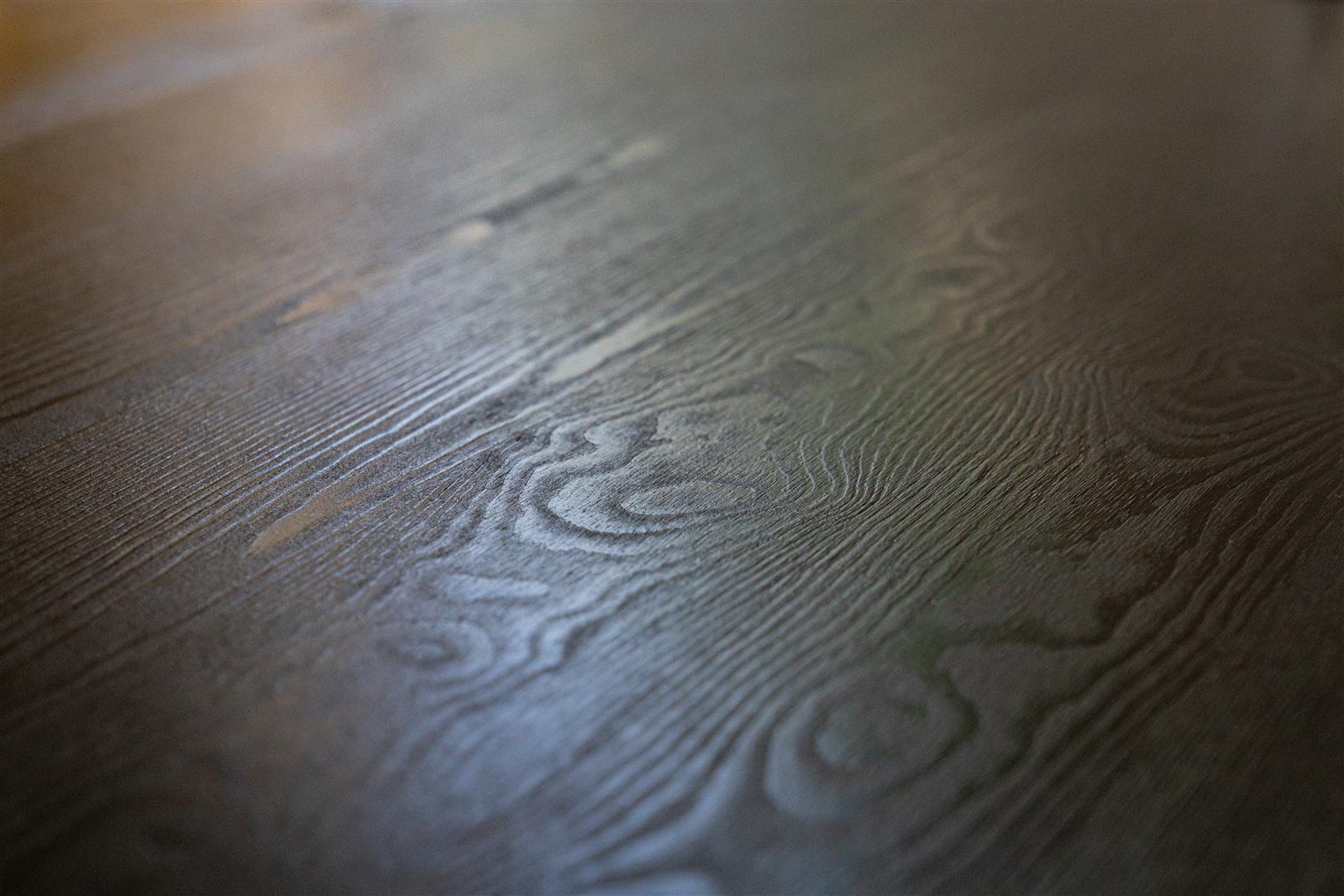 - De prachtige hout structuur is zichtbaar in het tafelblad