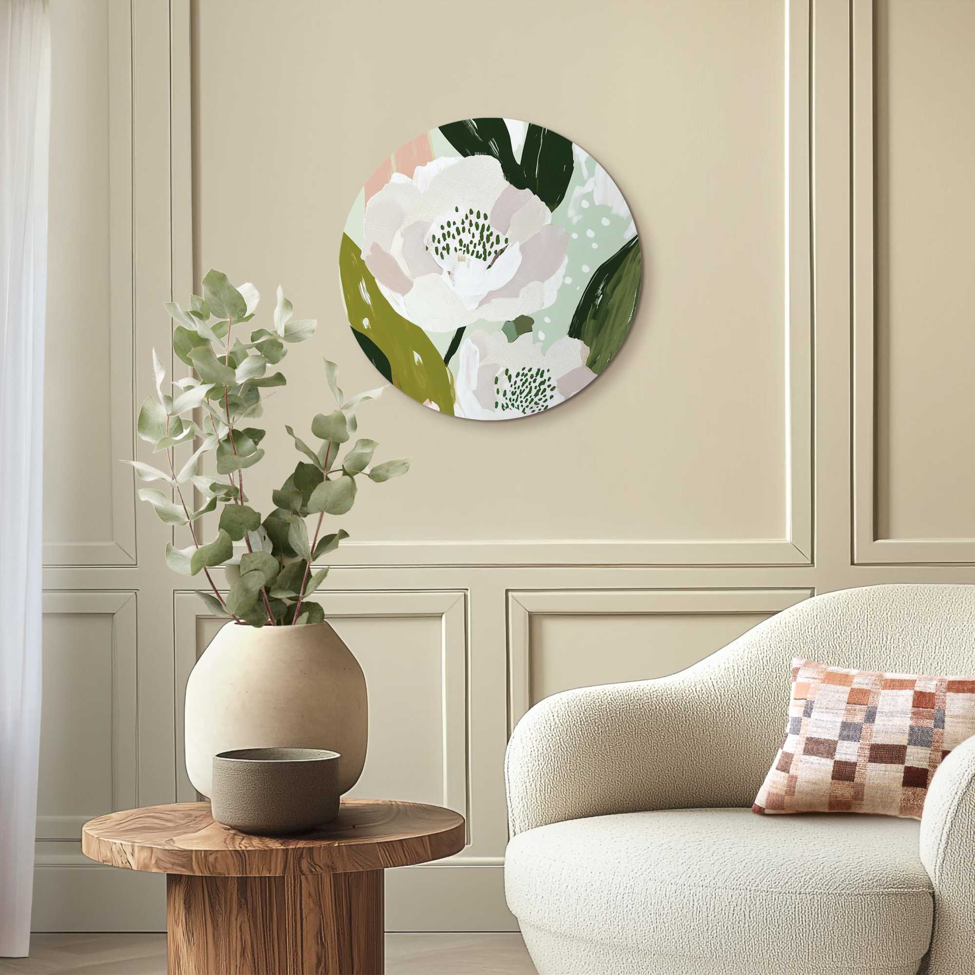 Reinders - Bloemen - Glasschilderij Ø 50 cm - Wit
