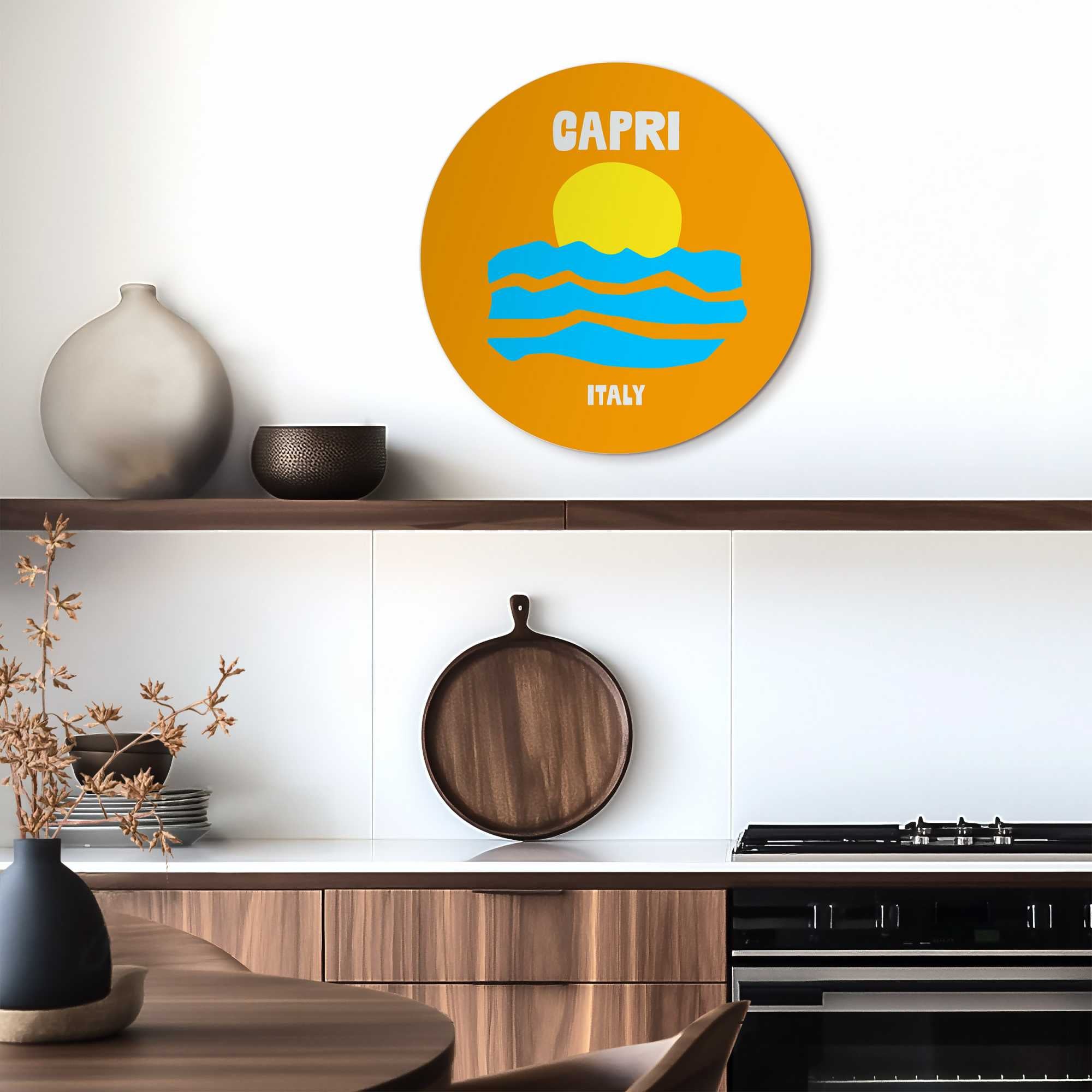 - De witte letters CAPRI boven en ITALY onder geven het geheel een frisse, vakantieachtige uitstraling