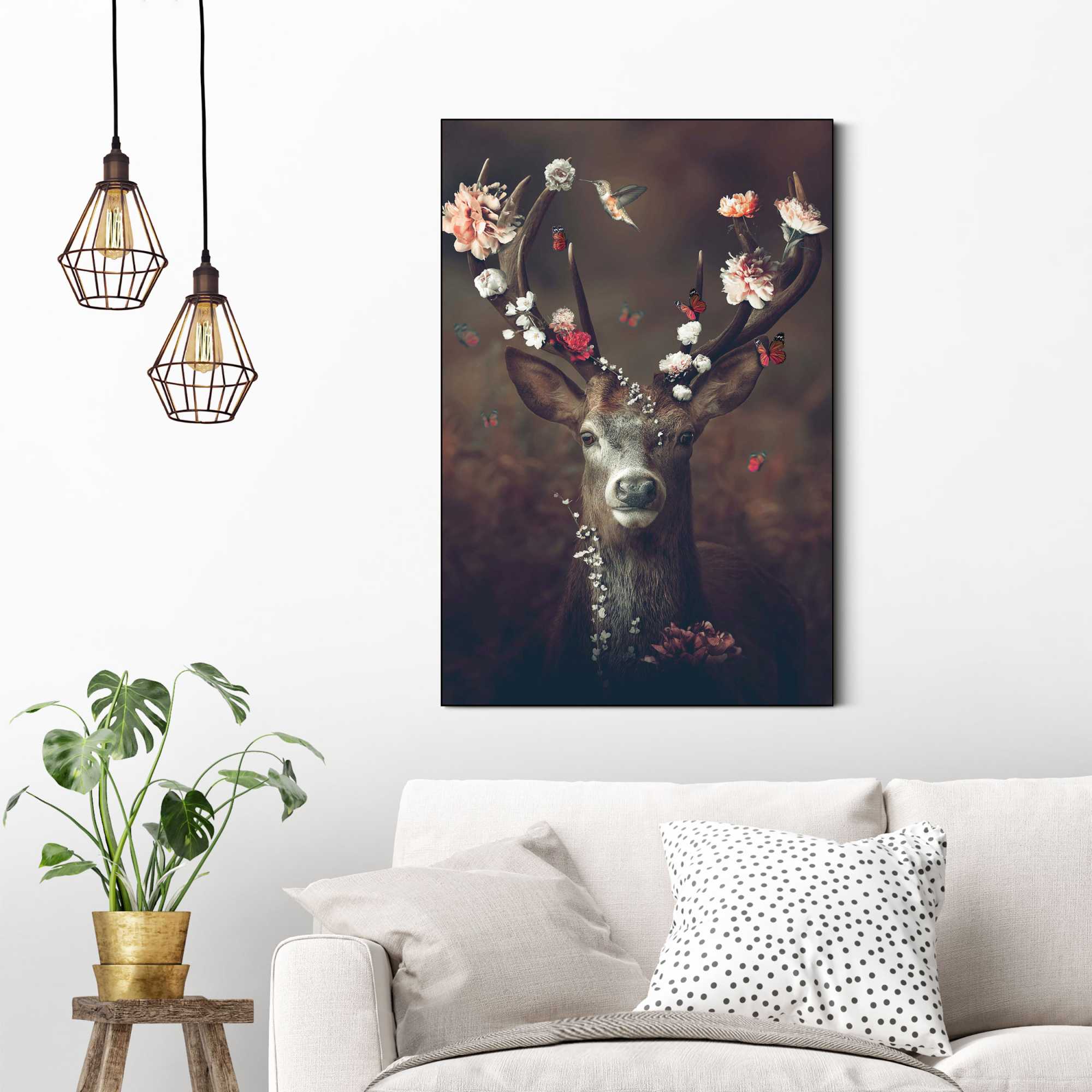 Reinders - Fauna Flora Deer - Schilderij 90x60cm Zwart