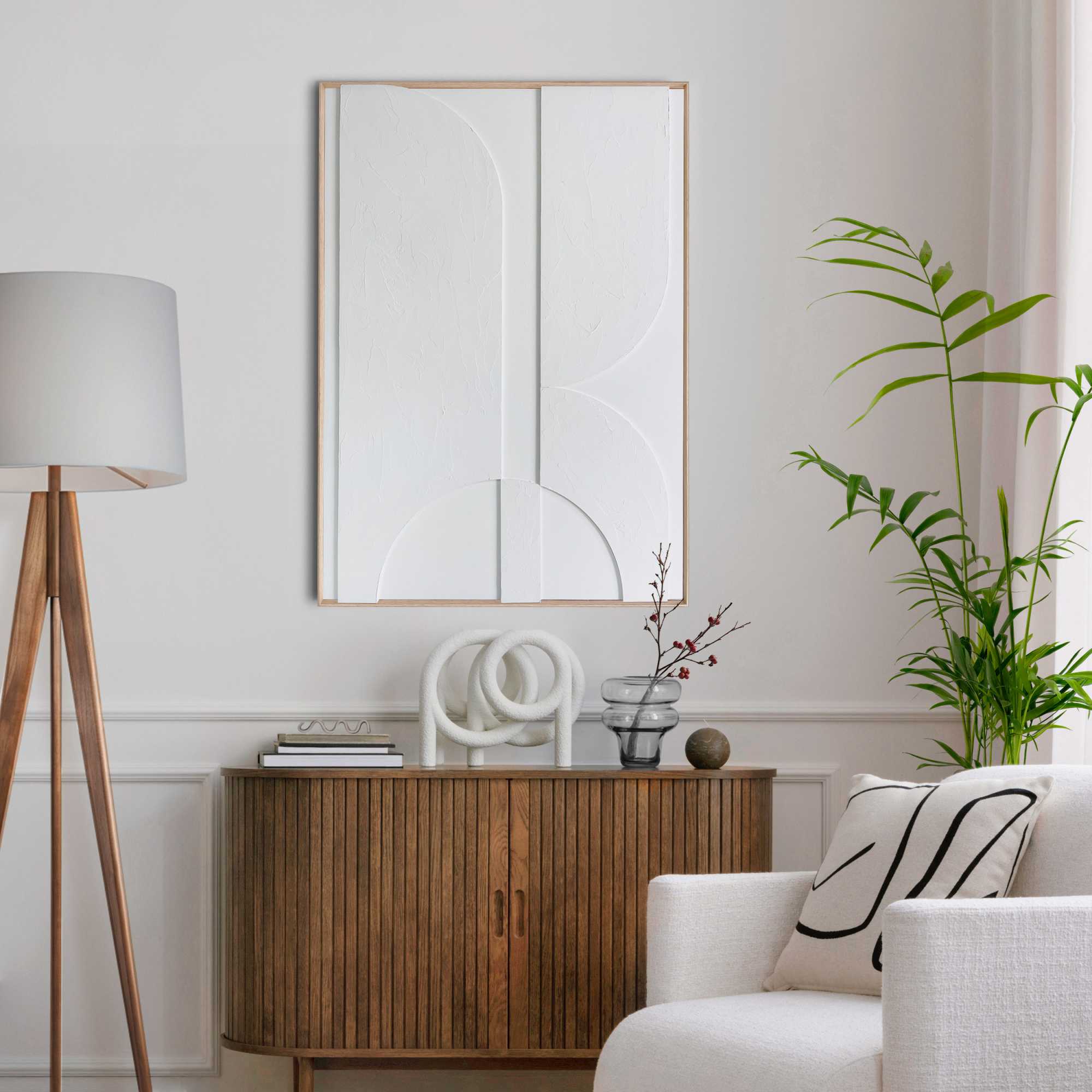 - Handgemaakt Scandinavisch minimalistisch schilderij met 3D-textuur