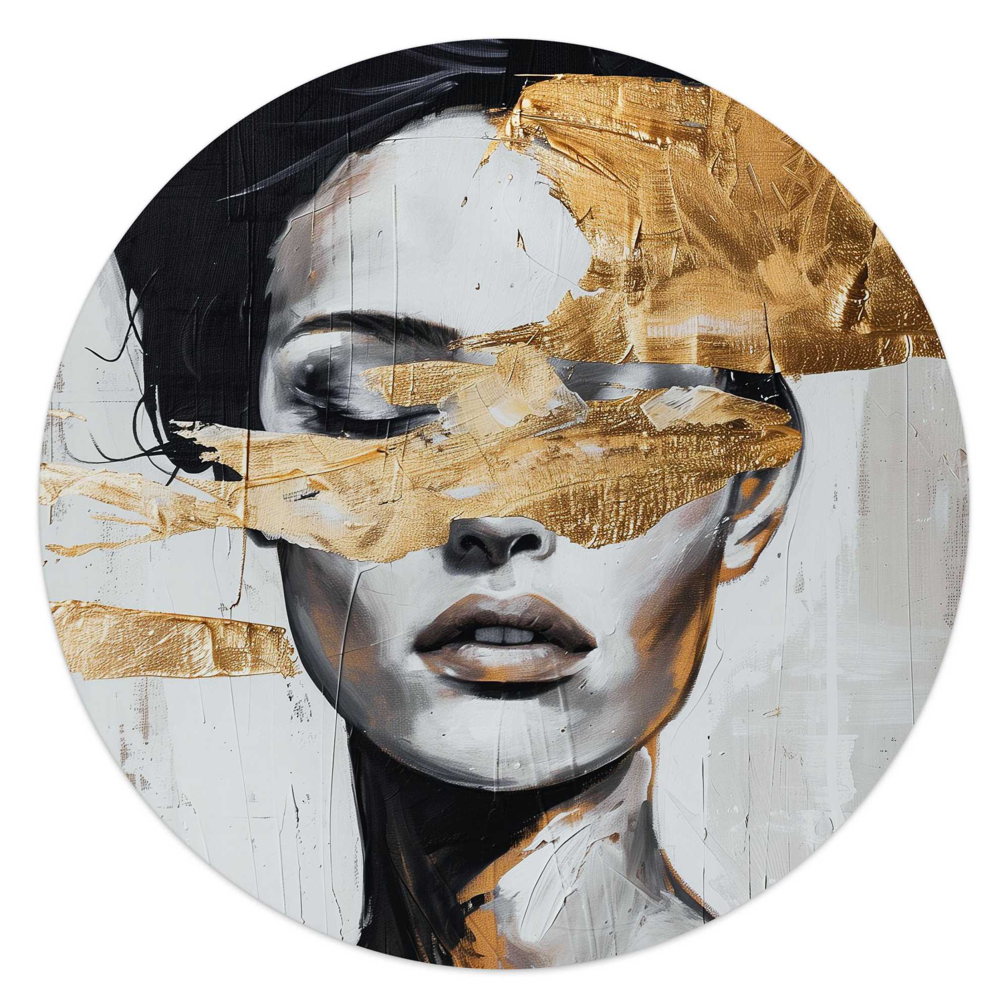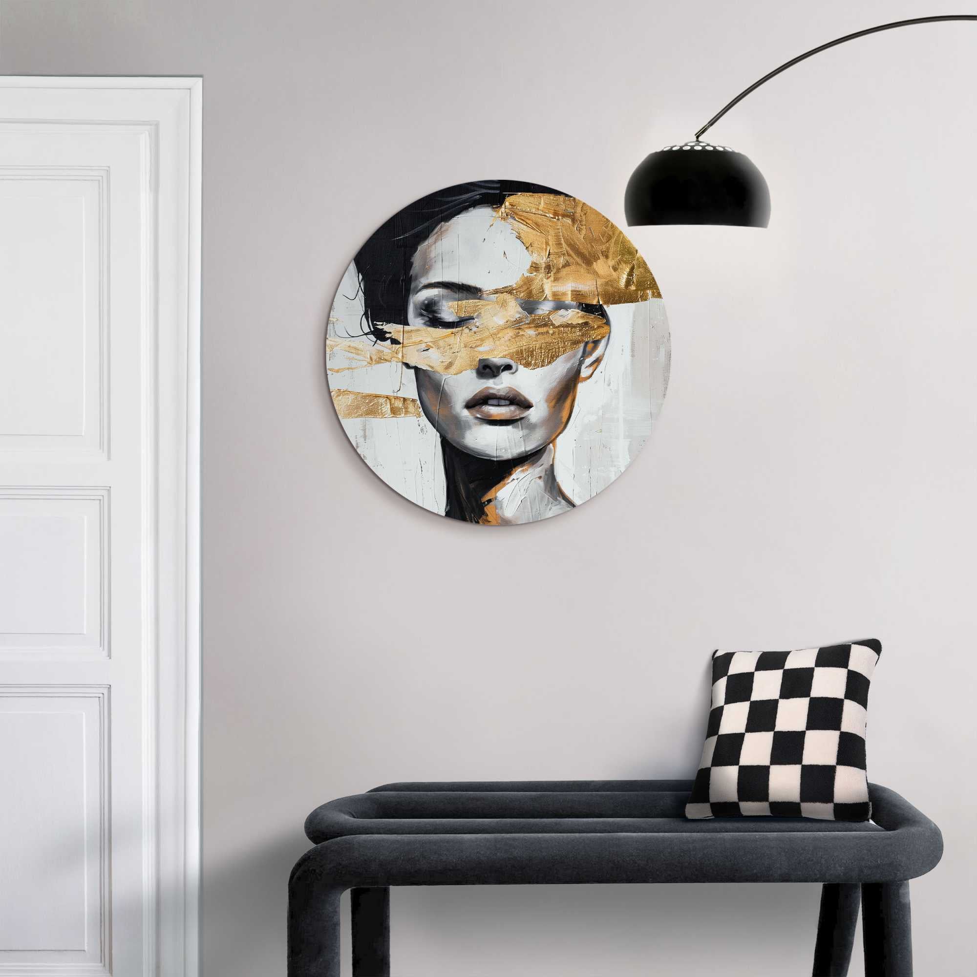 Reinders - Vrouw met goud detail - Glasschilderij Ø 50 cm - Goudkleurig