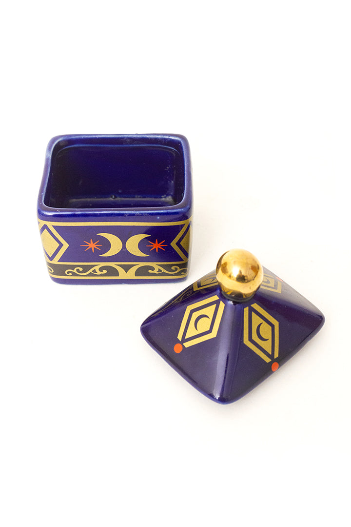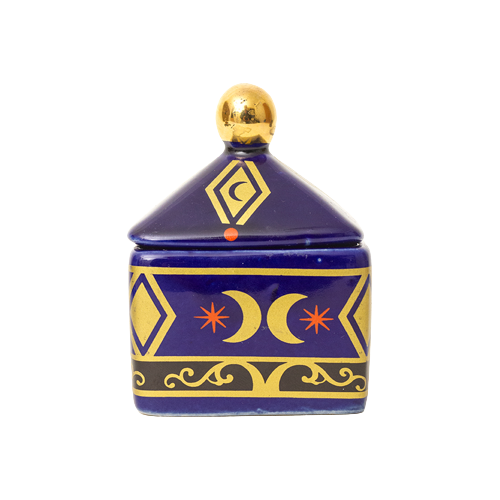 Reliving Blauw Potje Van Keramiek Met Print Van Goudkleurige Manen -