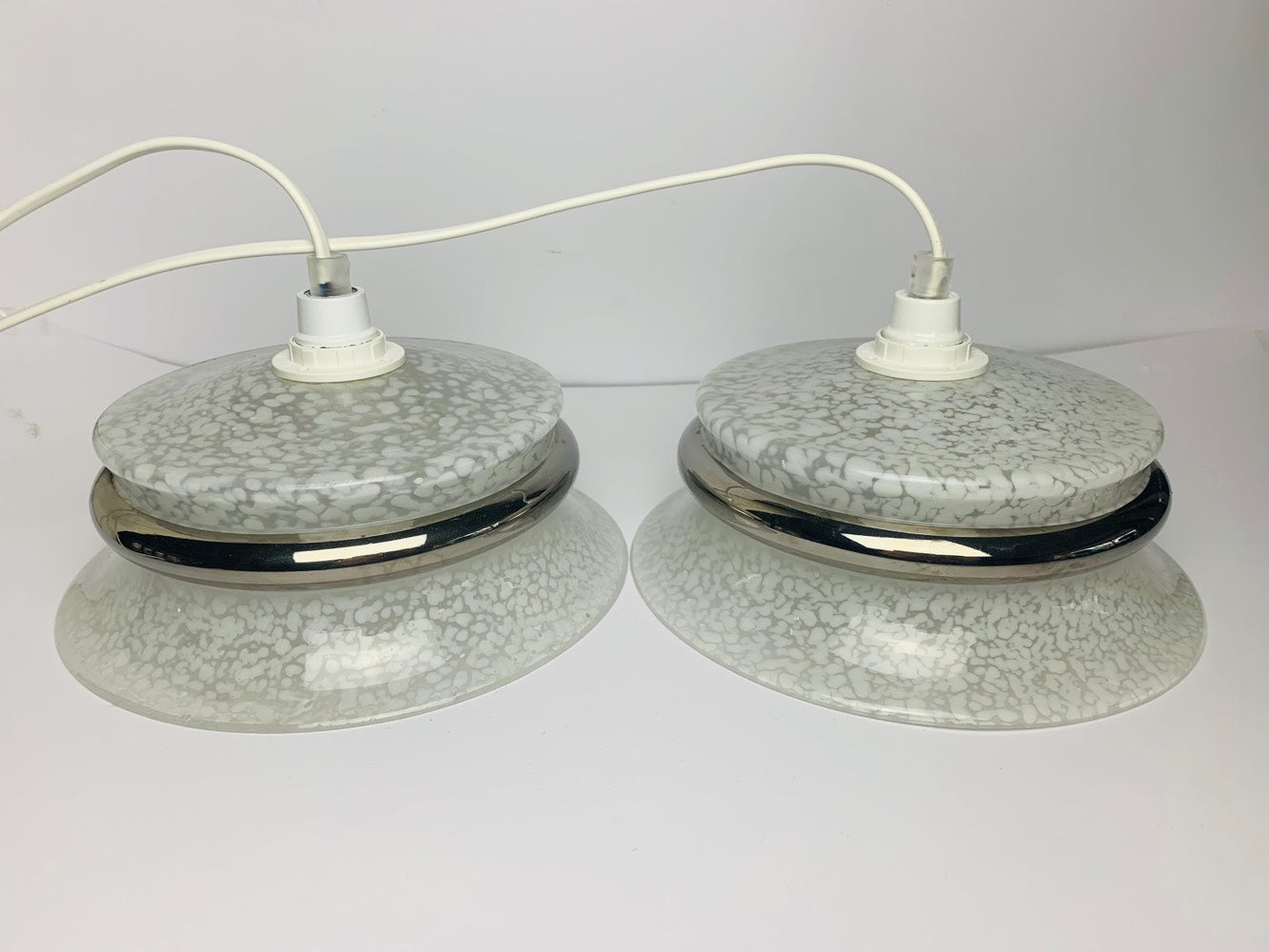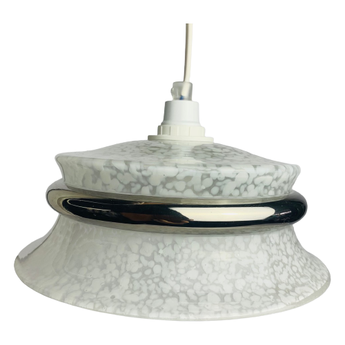 Reliving Hanglampjes Wit Gewolkt Glas Met Zilverkleurige Rand