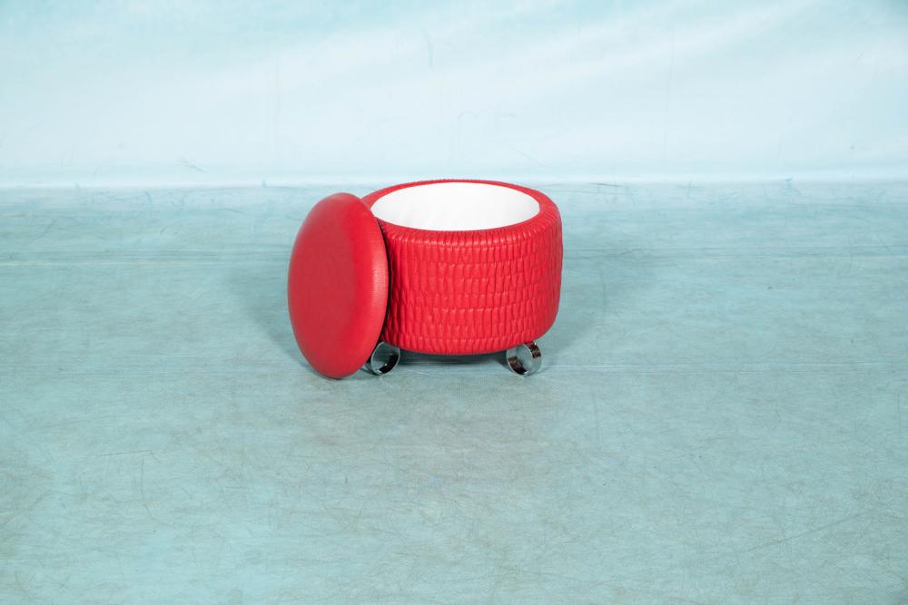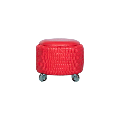 Reliving Space Age Ronde Rode Voetenbank, Vintage Jaren 60|70 Poef