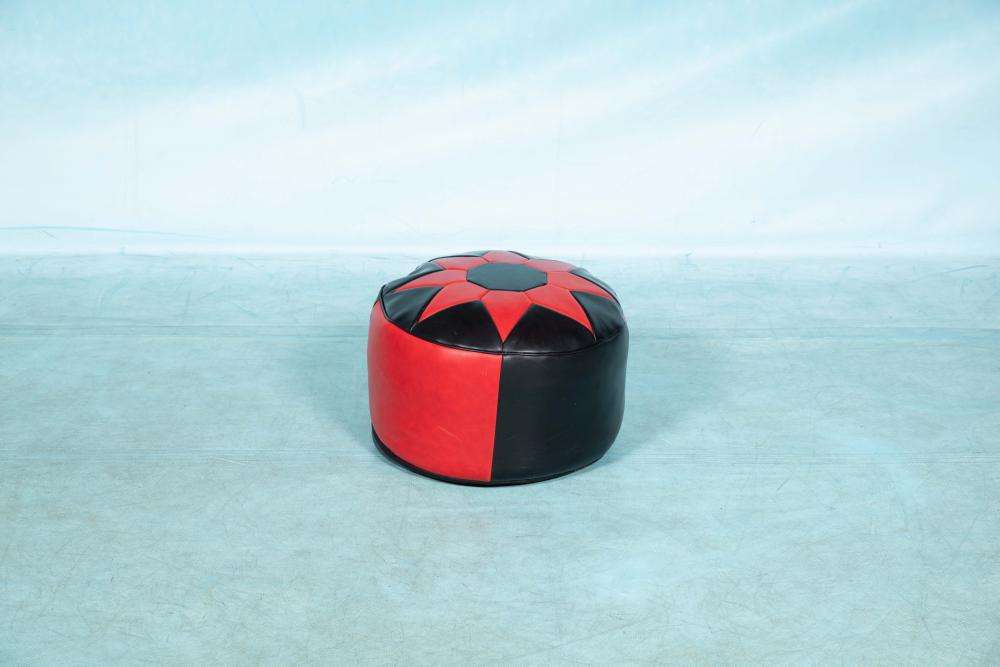 Reliving Vintage Jaren 60 Patchwork Ronde Poef, Retro Voetenbank