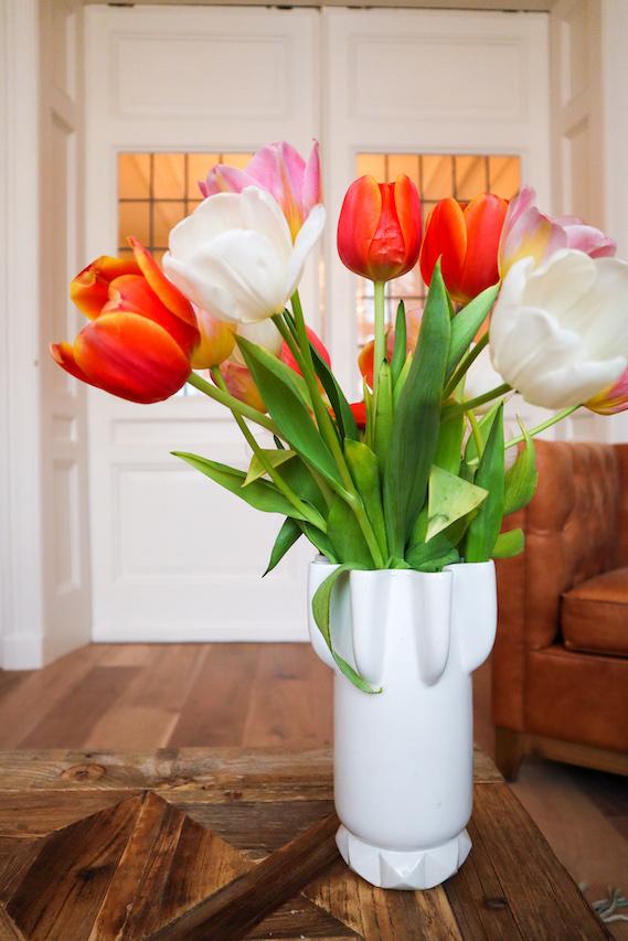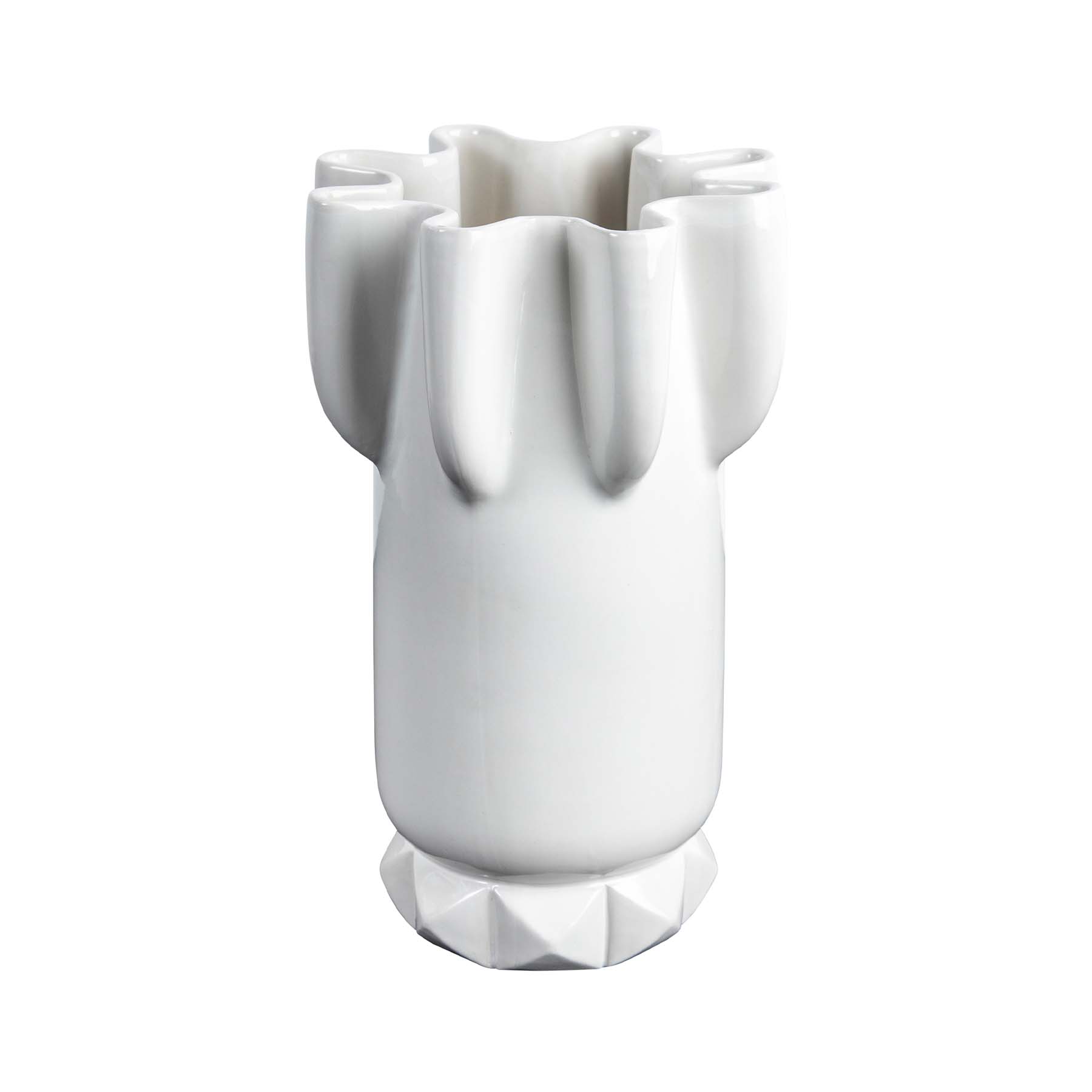 Deze gevouwen witte vaas heeft een futuristisch uiterlijk met het model wat lijkt op een raket. Gezellig op tafel te combineren met een mooie bos vrolijke bloemen en ons mix-and-match servies qua kleur. Een eye-catcher voor ieder interieur! ...