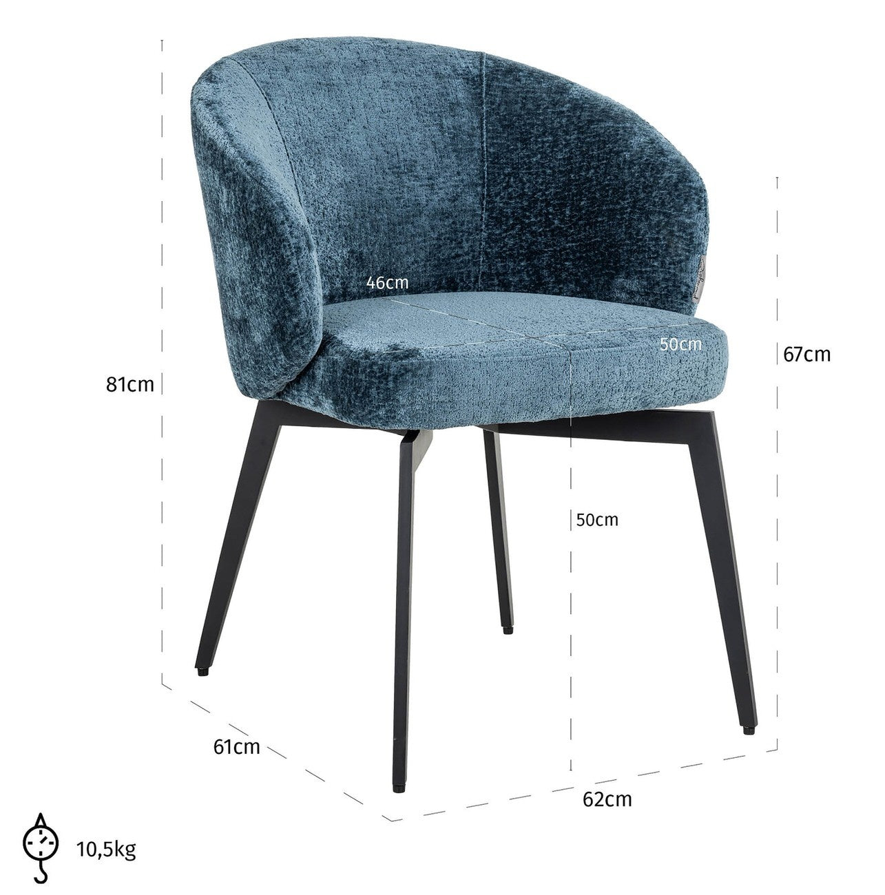Richmond Interiors Amphara Blauw Chenille Eetkamerstoel