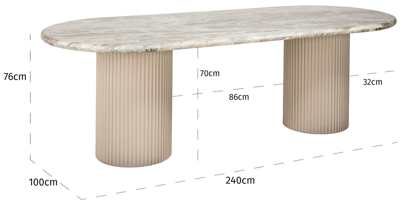 Richmond Interiors Coronel Marmer 240 x 100 cm Eettafel Ovaal