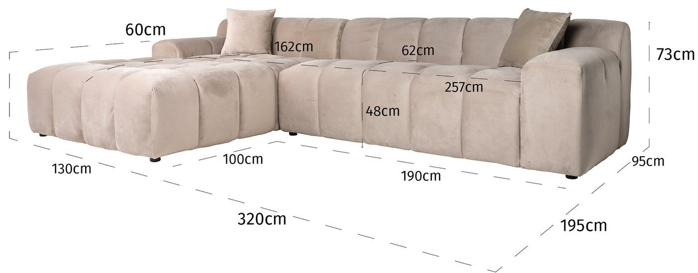 Richmond Interiors Cube 3-Zits Bank+Chaise Longue Links Khaki Velvet