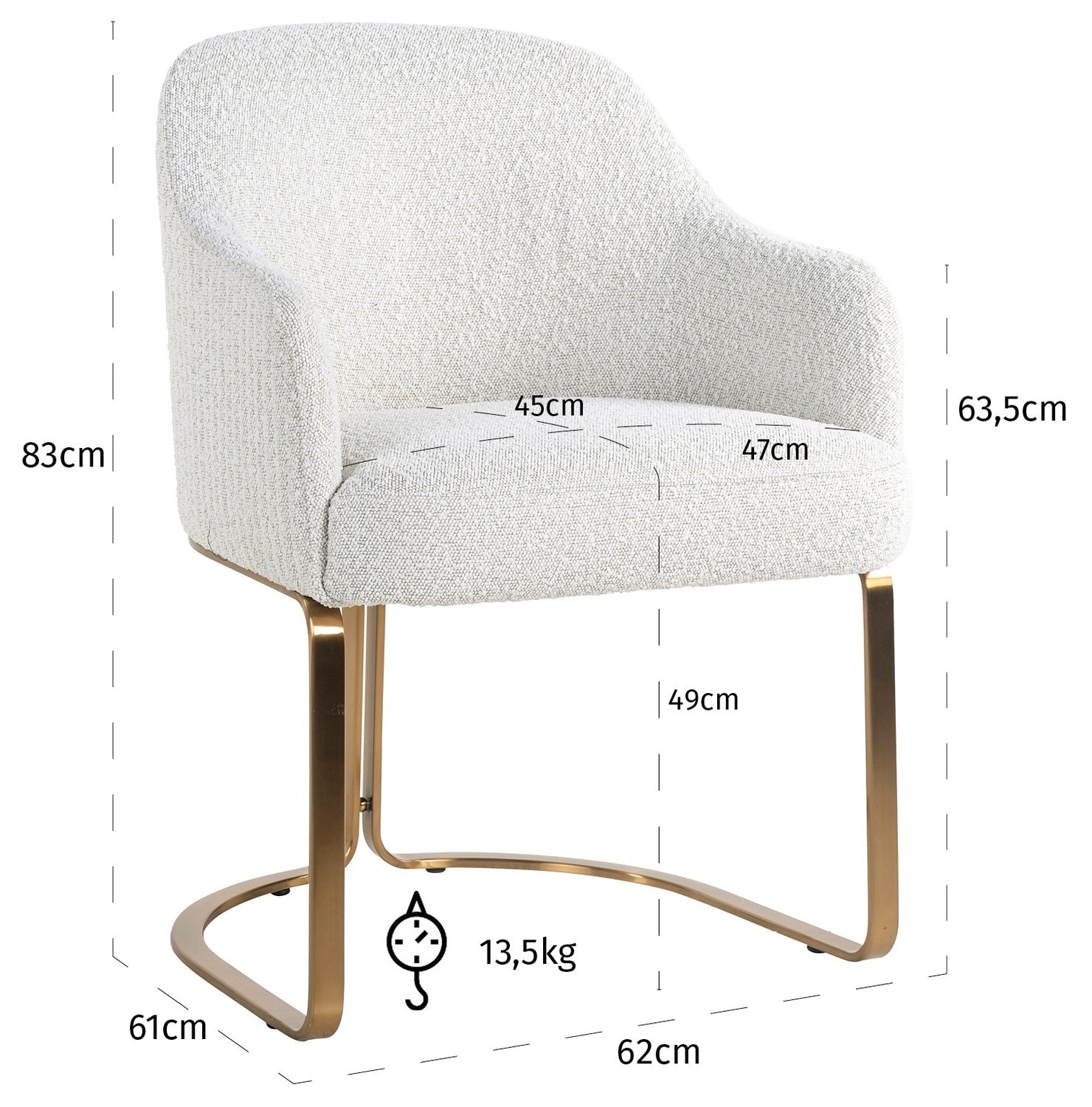 Richmond Interiors Hadley Wit Bouclé Eetkamerstoel