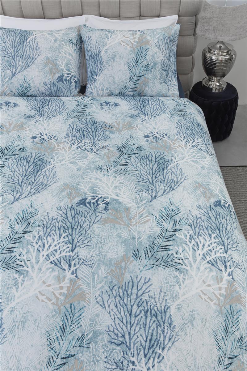Het dekbedovertrek Calm Coral uit de bedtextielcollectie van Rivièra Maison heeft een prachtige gelaagde print die de onderwaterwereld weerspiegeld. De silhouetten en aquarelgeschilderd koraal en waterplanten geven het overtrek een elegante uitstraling. De verschillende blauwtinten; lichtblauw, grijsblauw, blauwgroen, in combinatie met wit zorgen voor een fris voorjaarsgevoel. Zowel de kussenslopen als het overtrek zijn aan de voor- en achterzijde hetzelfde.Luxe cadeaudoosHet dekbedovertrek is verpakt in een luxe cadeaudoos, inclusief heerlijk geurend lavendelzakje. De doos is eenvoudig herbruikbaar. Een mooi cadeau voor jezelf of iemand anders.