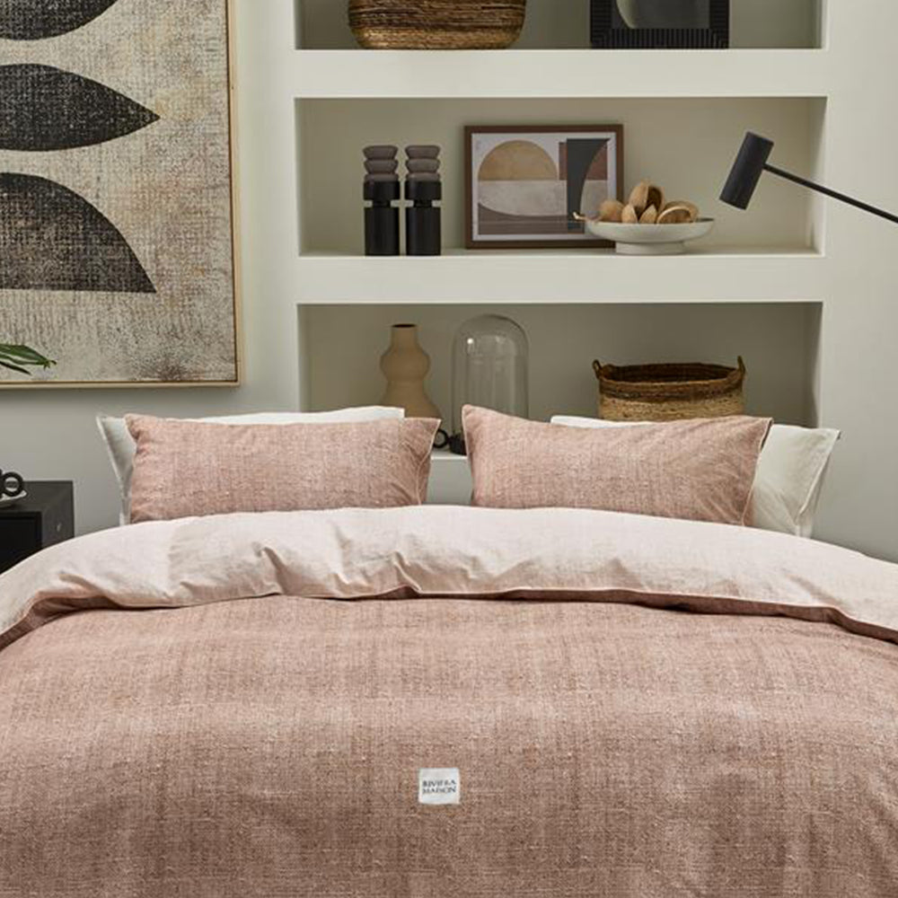 Waarom dekbedovertrek Coughton Court? Dekbedovertrek Coughton Court heeft een prachtige linnenprint in twee kleurtonen. De achterzijde heeft een lichtere kleur dan de voorkant. Op deze manier kun je het overtrek aan beide zijden gebruiken. Het is een stoer, fris en modern dessin, met een mooie afwerking van een contrasterende bies om zowel het kussensloop als het dekbedovertrek. Op het overtrek en de achterzijde van de kussenslopen is subtiel de branding Rivièra Maison verwerkt op een opgestikt label. Dit dekbedovertrek is verkrijgbaar in meerdere kleuren.