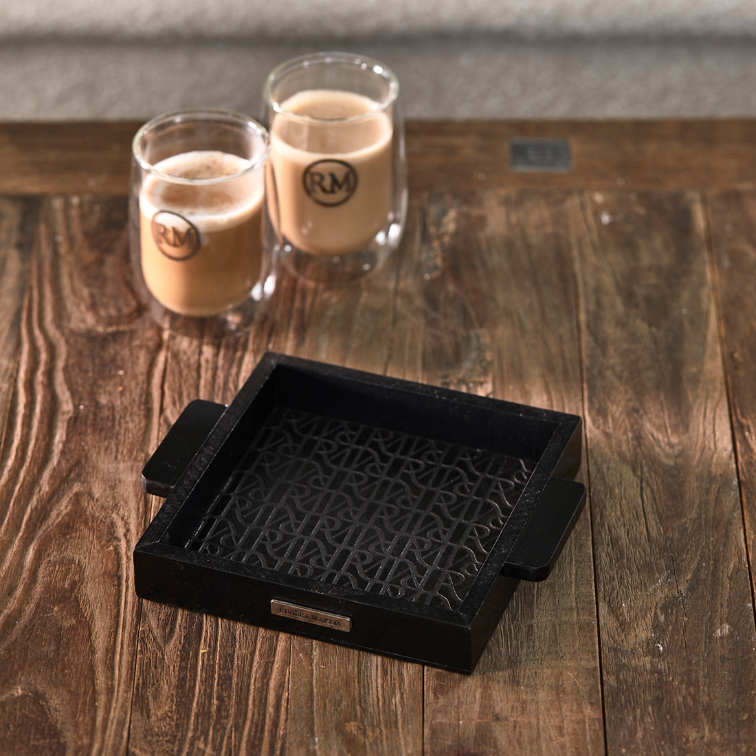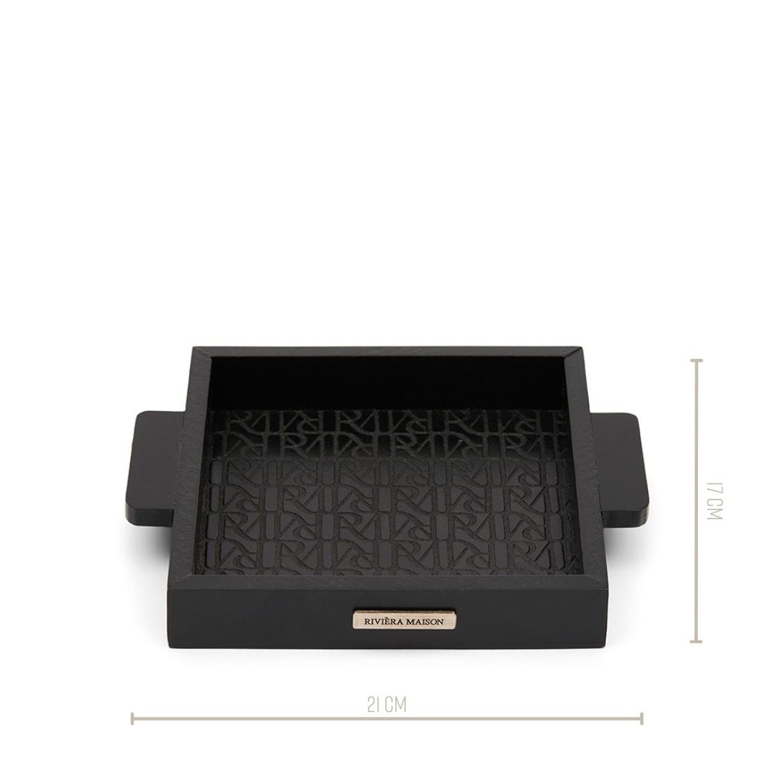 Het RM Identtity mini-dienblad is een prachtig voorbeeld van het nieuwe RM-monogram en hoe dat is doorgevoerd op een accessoire. Dit kleine dienblad is van donker geverfd hout, hierin is als een slang het RM-monogram gelaserd. Dit zorgt samen met de rechthoekige handgreepjes voor een strak geheel.