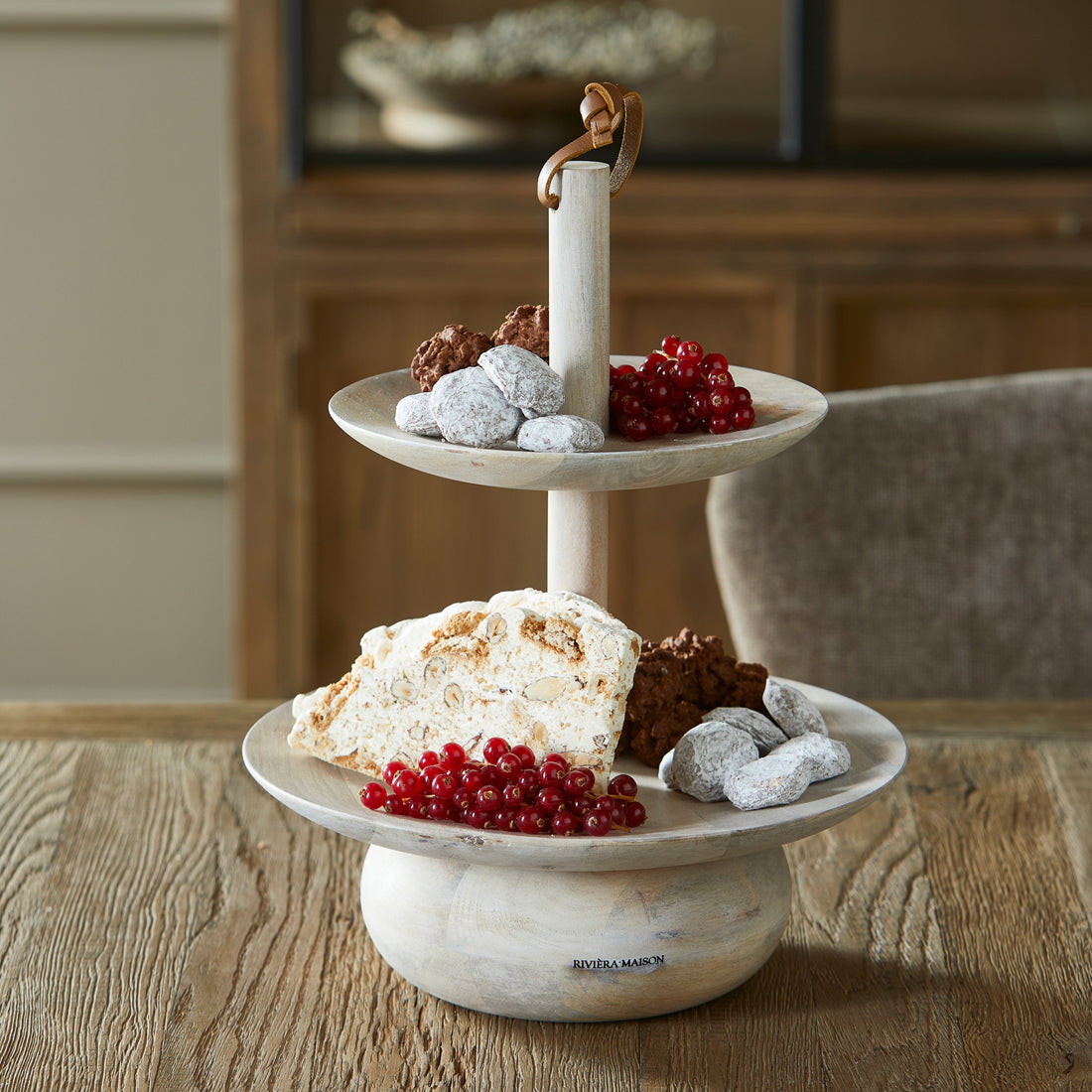 - Deze etagère met twee lagen van mangohout heeft een eigentijdse uitstraling dankzij de unieke bolling van de poot. Het moderne design maakt het een stijlvolle en functionele aanvulling op je interieur. Perfect voor het stijlvol serveren van lekkernijen of decoratieve items.