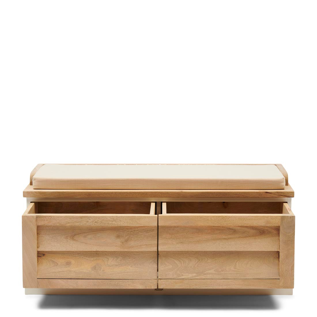 Rivièra Maison - Handgemaakte Opbergbank, Mangohout met Katoenen Bekleding, 40x48x110 cm