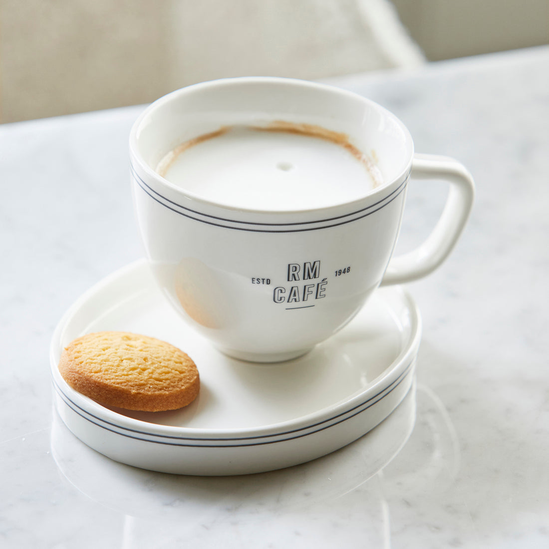 Riviera Maison Kop en schotel Wit - Long Island - Porselein
