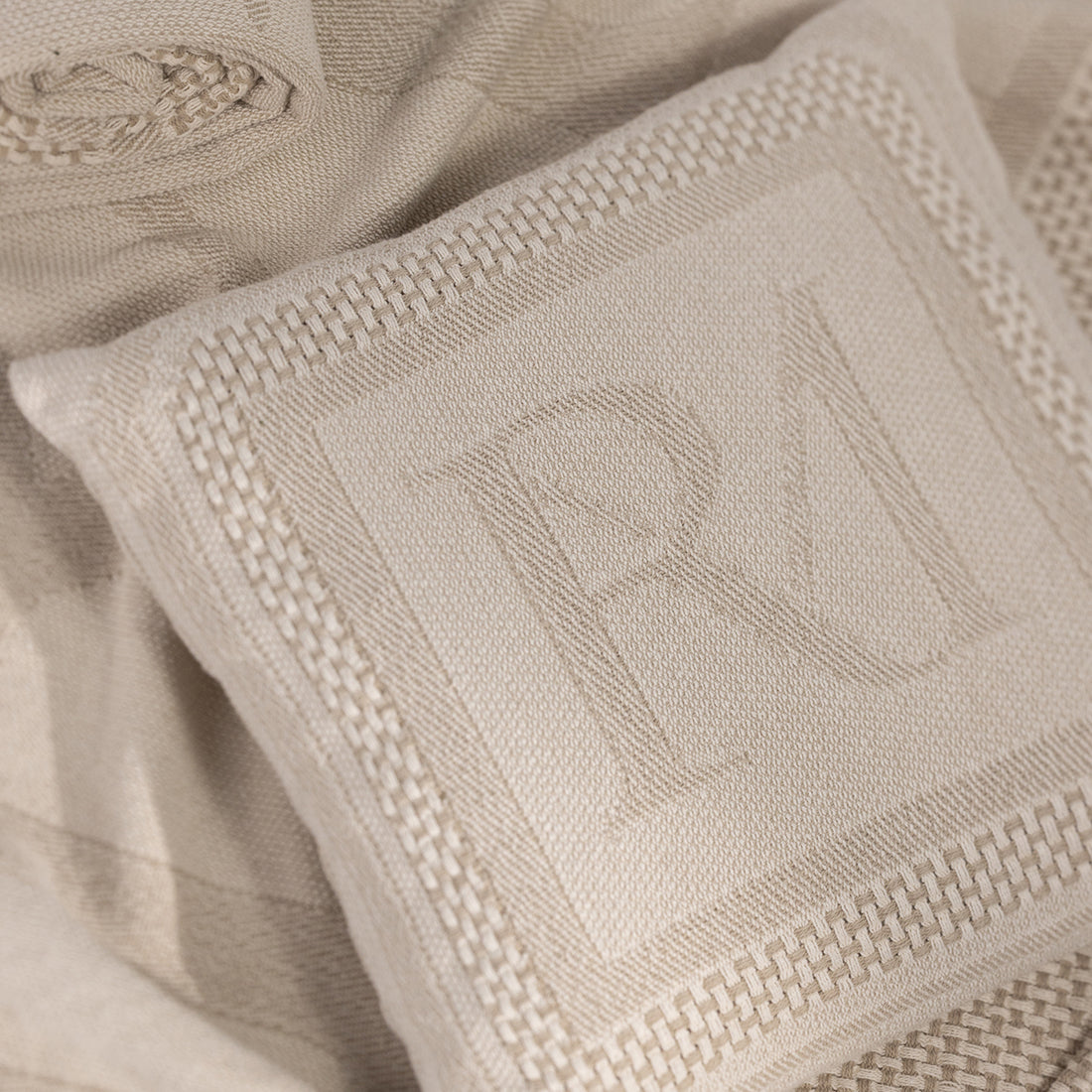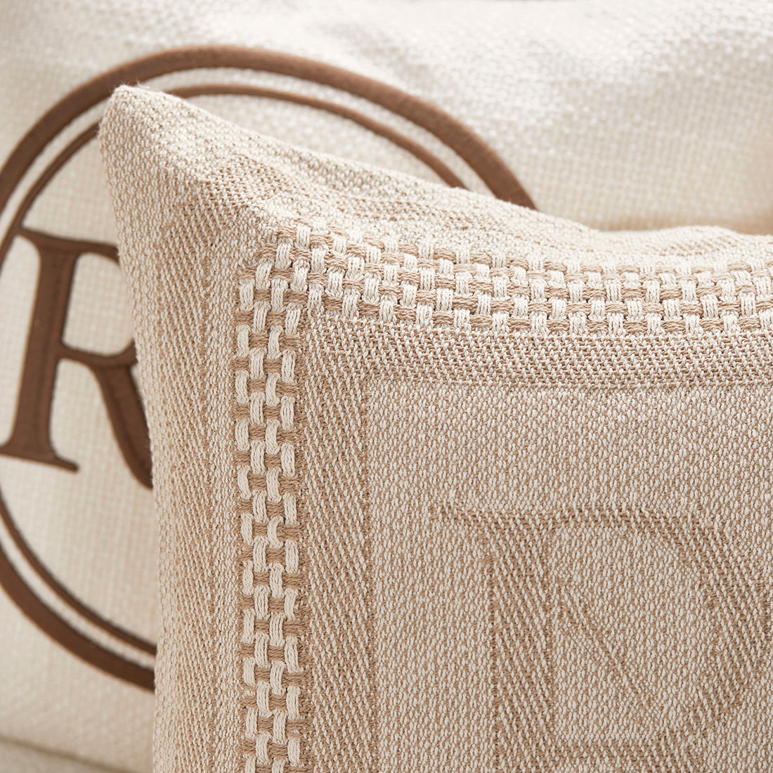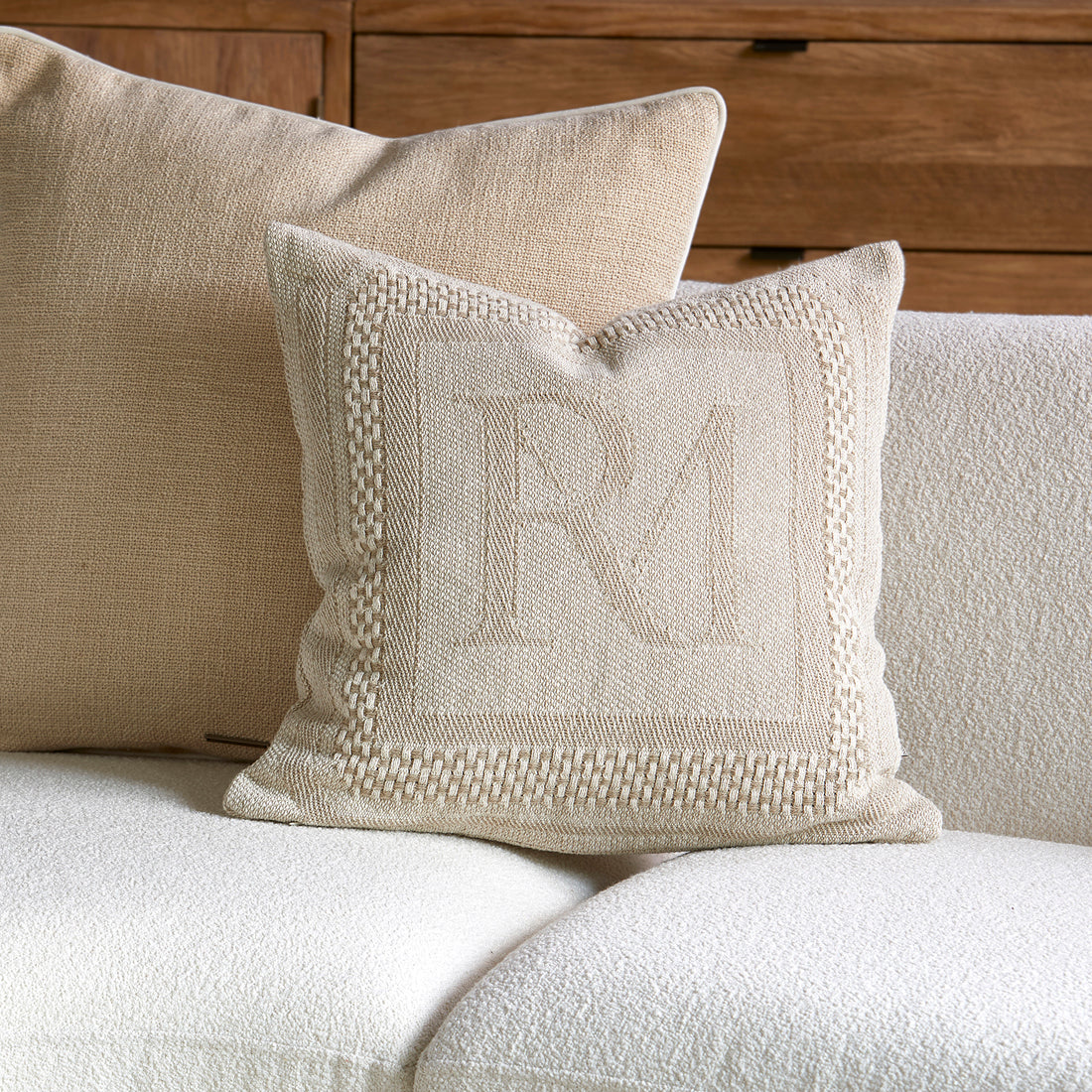 Riviera Maison Kussenhoes Beige geborduurd 50x50 - Monogram Jacquard