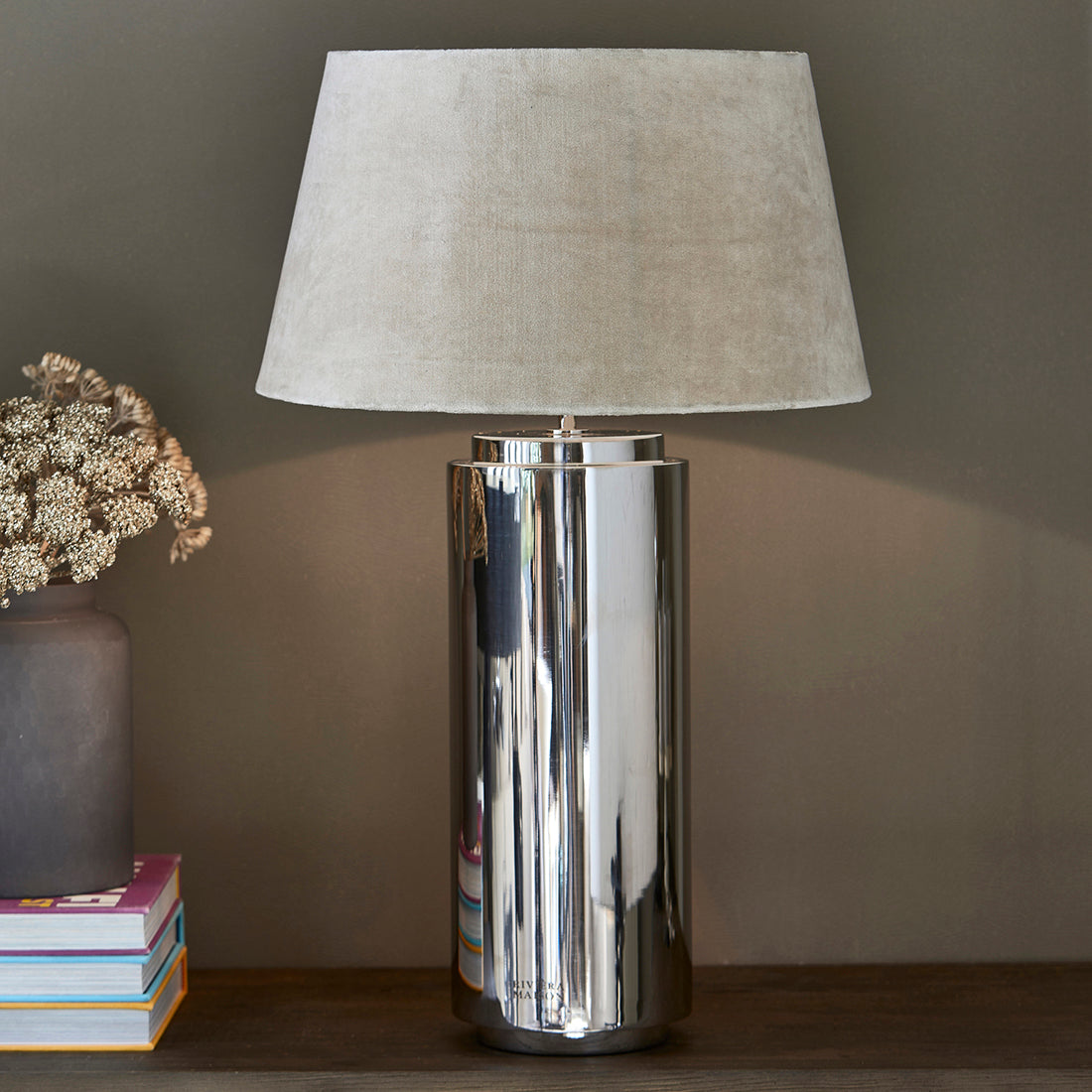Riviera Maison Lampenkap beige, Cilinder - Velvet (ØxH) 45x25