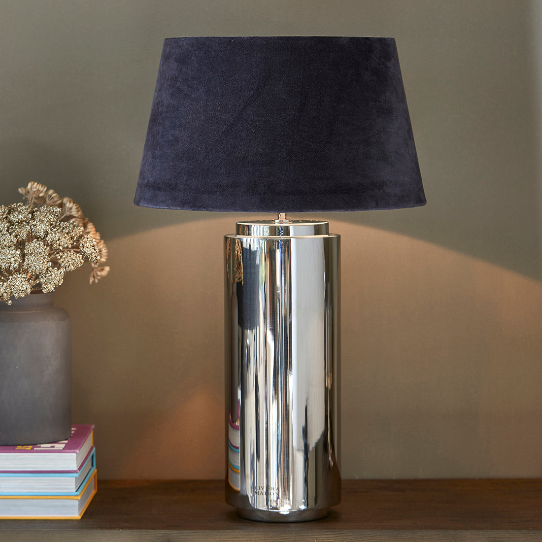 Riviera Maison Lampenkap blauw, Cilinder - Velvet (ØxH) 45x25