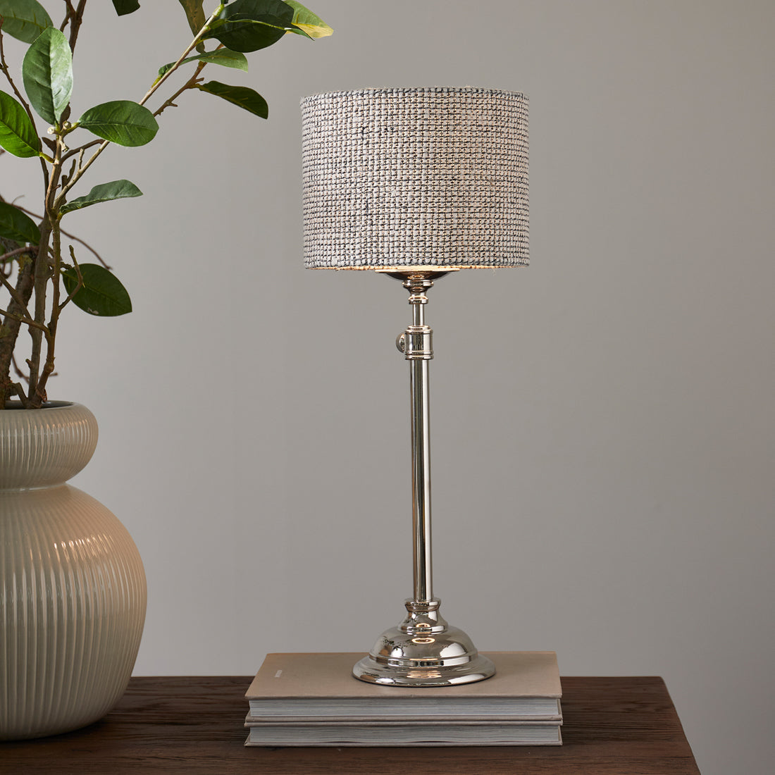 - Deze cilindervormige lampenkap is een ware blikvanger, fijn geweven uit een luxe combinatie van zijde en linnen met een zwart-wit gemêleerd patroon. Het ontwerp voegt niet alleen elegantie toe aan je ruimte, maar straalt ook een moderne charme uit. De subtiele textuur van het materiaal creëert een warm en uitnodigend licht, waardoor elke kamer een verfijnde sfeer krijgt.