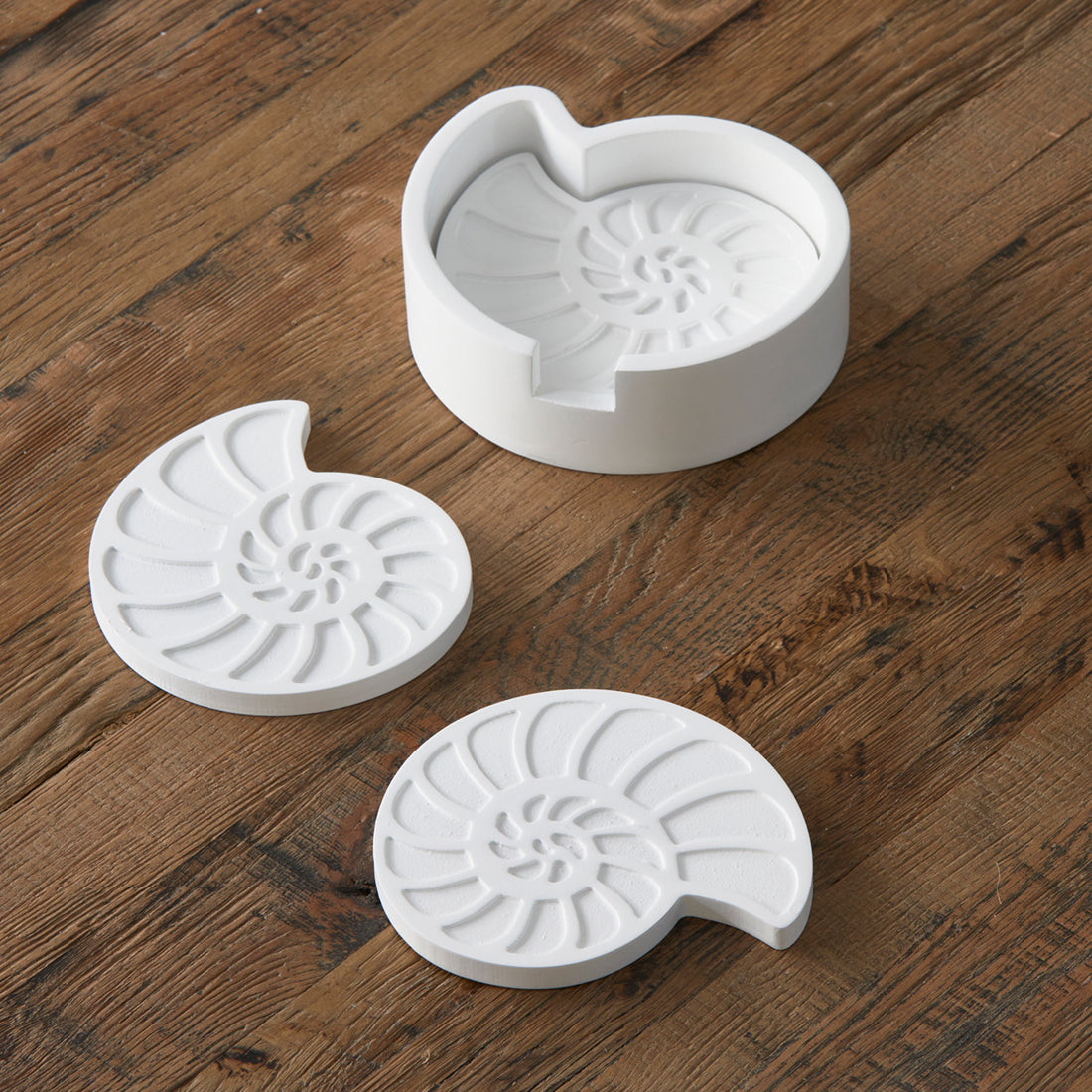 Riviera Maison Onderzetters 4 stuks met houder - Seaschell Blauw| Wit