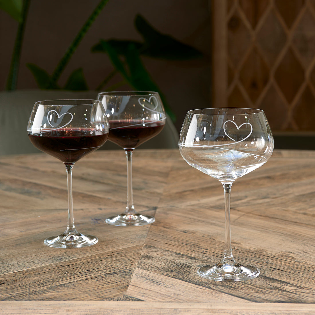 Riviera Maison rode wijnglas met gegraveerd hart - With Love