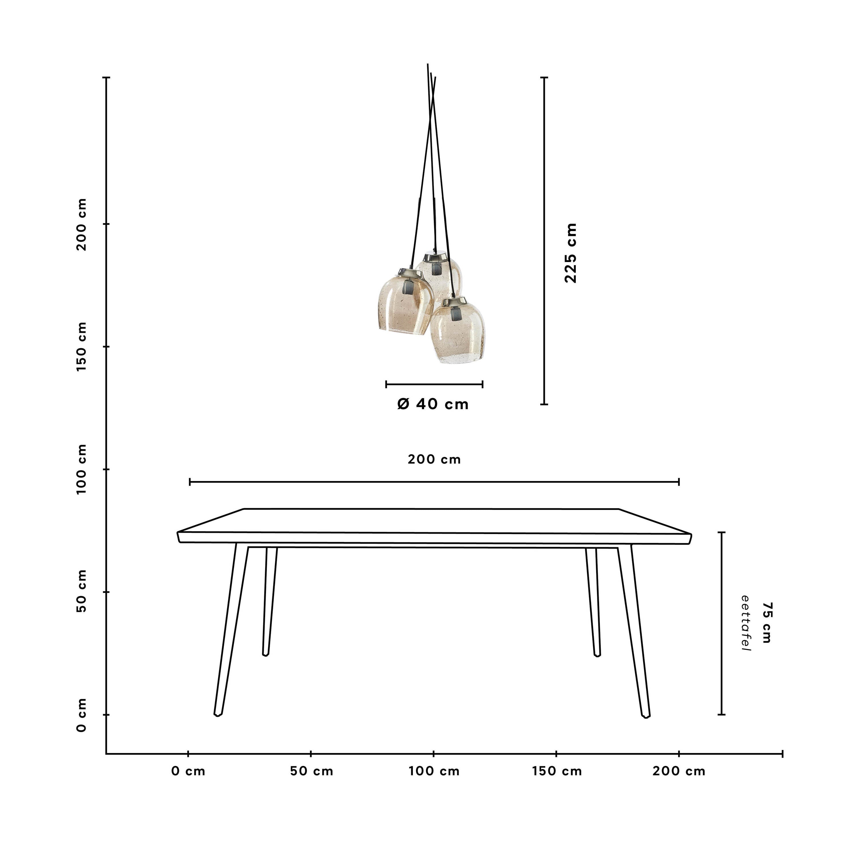 - Stijlvolle hanglamp met drie glazen lampenkappen