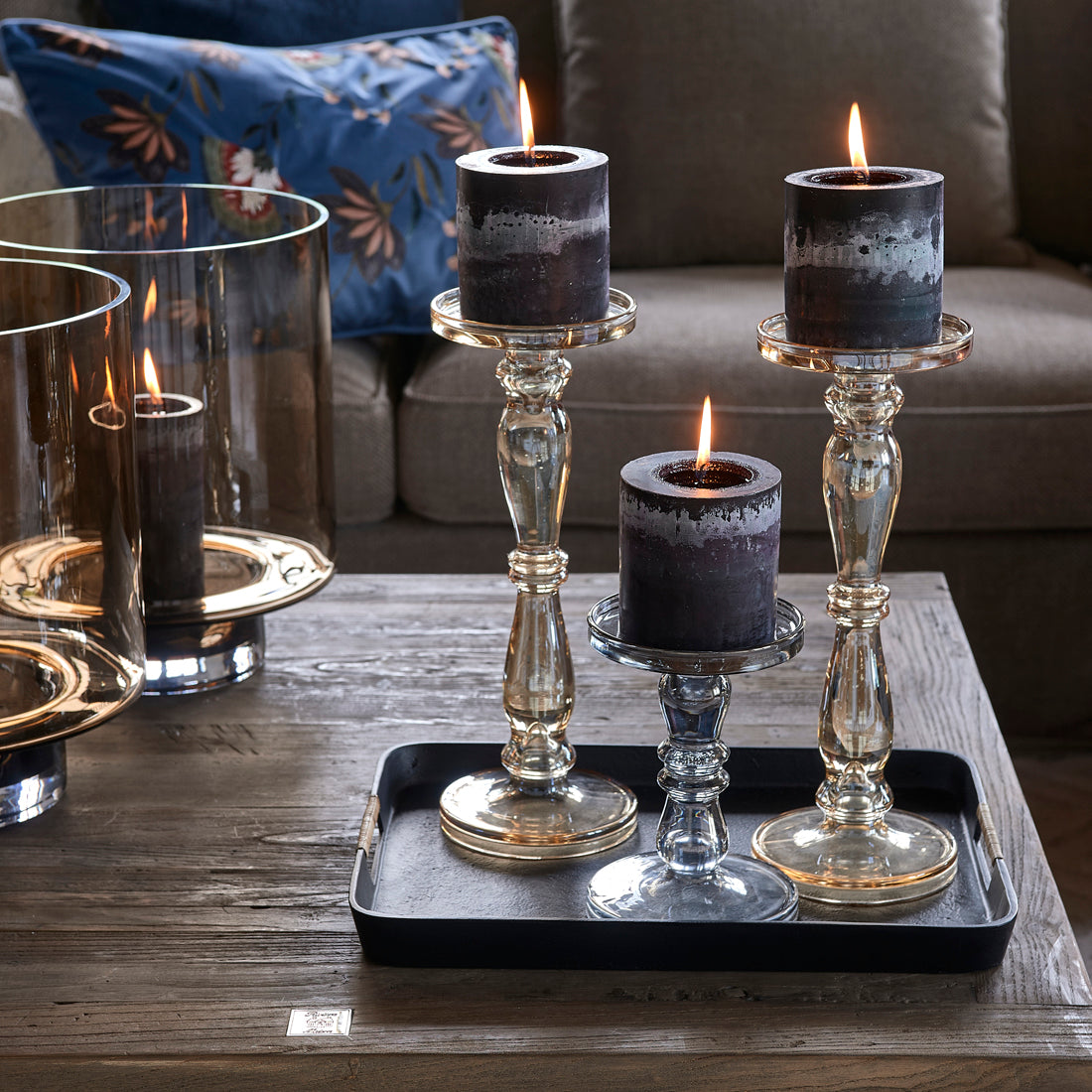 Riviera Maison Sandila Candle Holder grey M - 13.0x13.0x19.0 cm