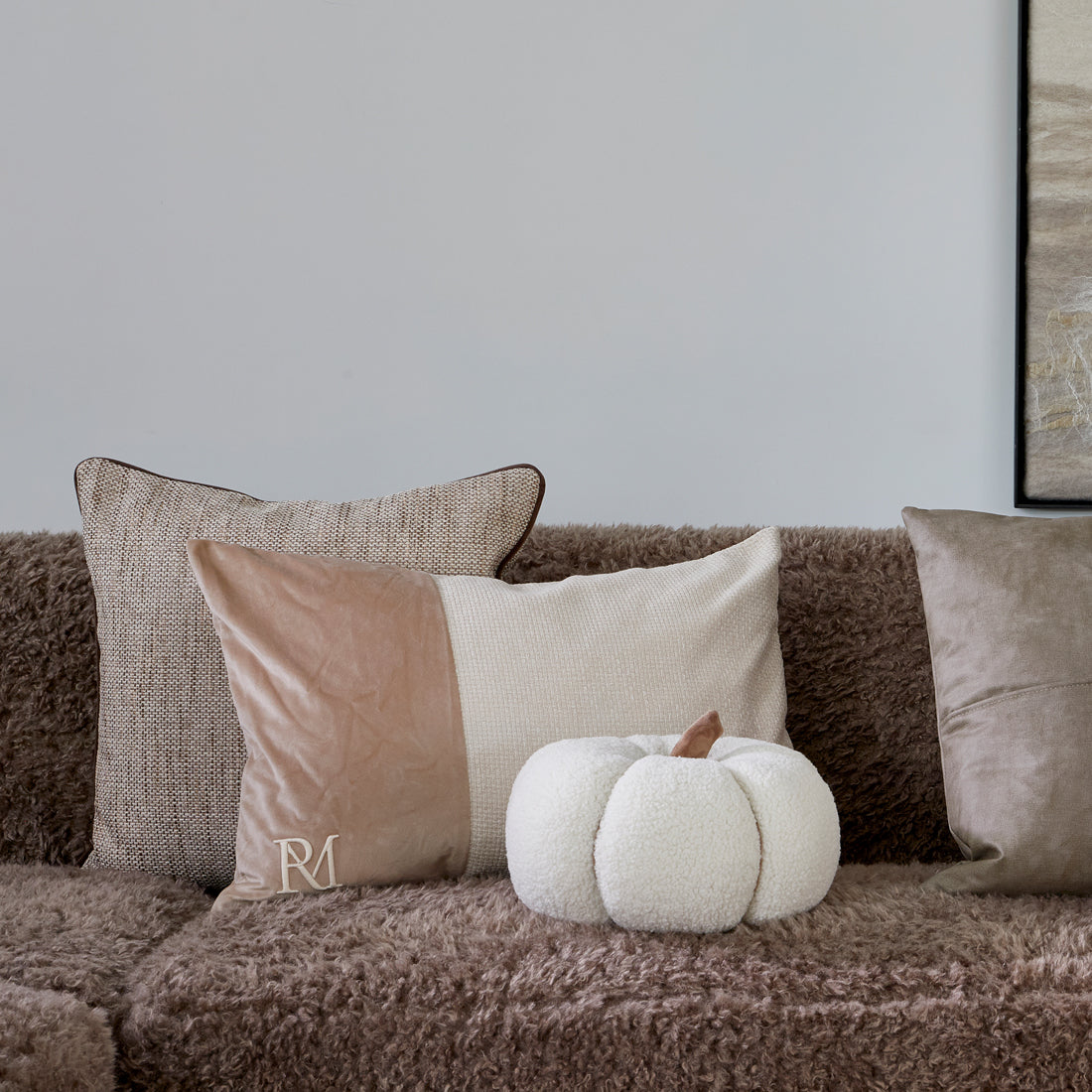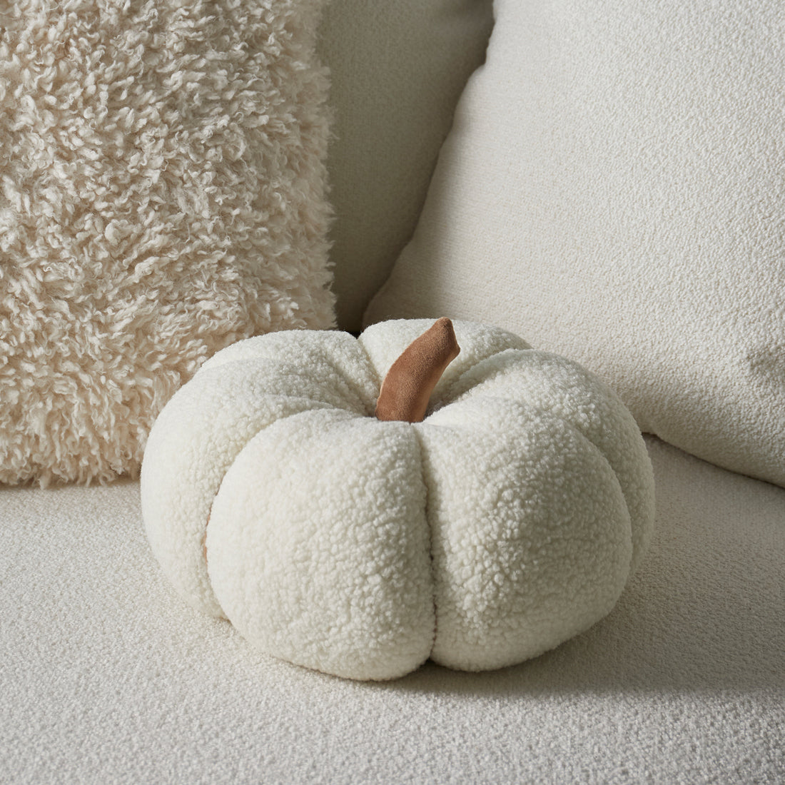 - Met het charmante RM Pumpkin sierkussen in de vorm van een pompoen haal je direct het knusse herfstgevoel in huis. De kussen is stevig gevuld en de witte bouclé stof geeft het kussen een moderne twist.