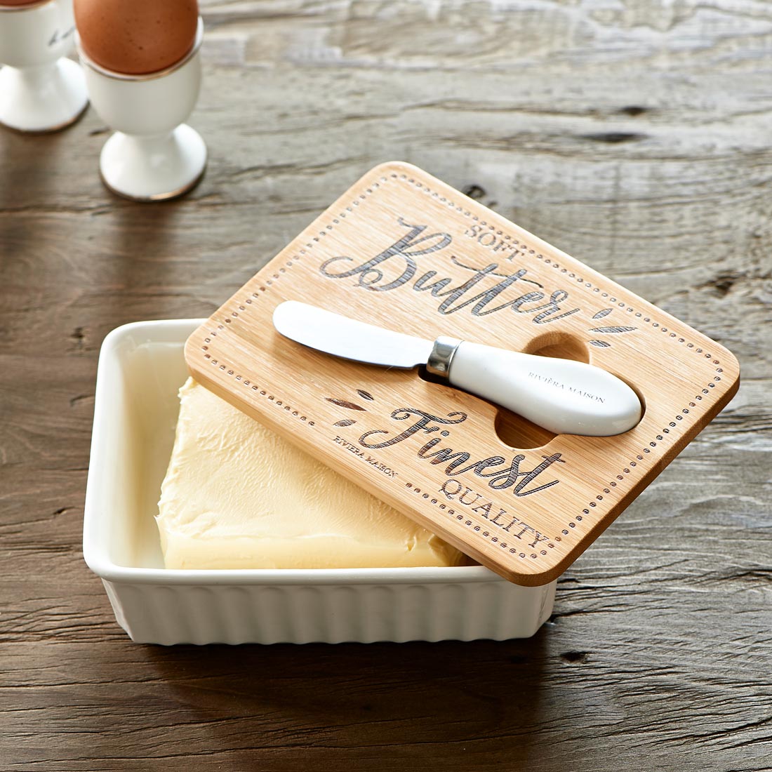 - Met het bijpassende houten deksel is deze beurtaire praktisch – het biedt een veilige manier om boter te bewaren en maakt het eenvoudig om het op tafel te zetten tijdens uw etentjes.