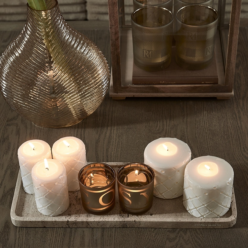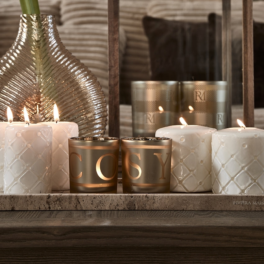Riviera Maison stompkaarsen, Wit - Pillar Padded - 2 stuks
