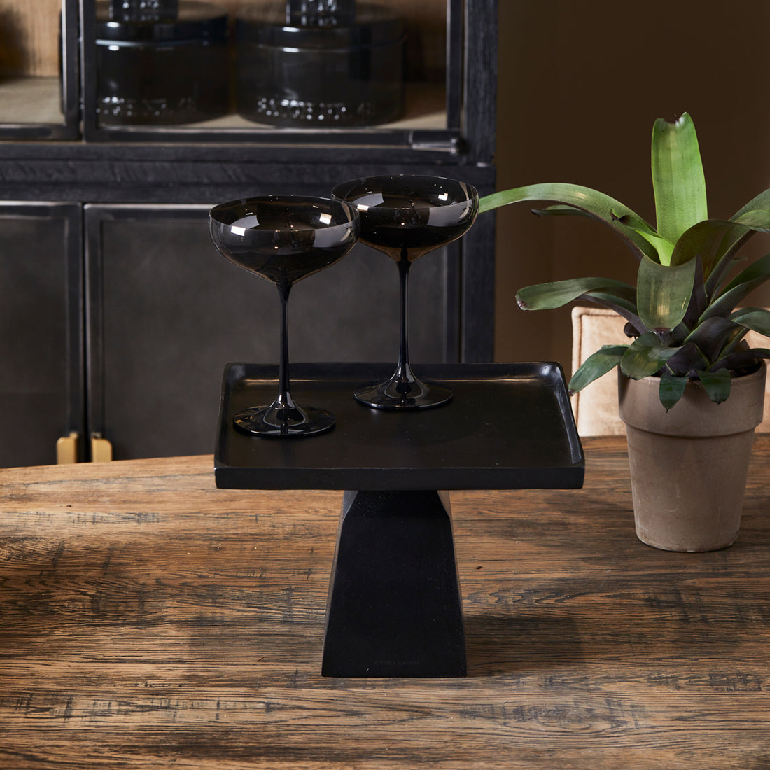Sober en stijlvol, dat is The Mark Cake Stand. Van zwart gepoedercoat aluminium, met onder het blad een goudkleurige rand ter afwerking. Op deze taartschaal kun je behalve een taart ook veel ander lekkers kwijt, zoet of hartig. Deze taartschaal past bij elk servies, juist door zijn stijlvoll ontwerp.