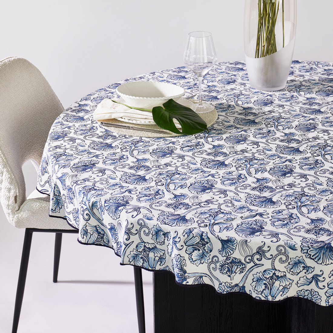 Riviera Maison Tafelkleed Blauw, Wit - Floral Island Rond kleed tafel