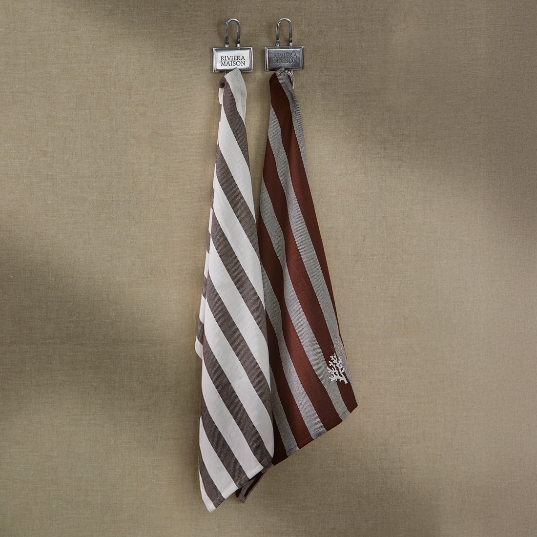 Riviera Maison Theedoeken Bruin - Coral Cove Keukenhanddoek - Katoen